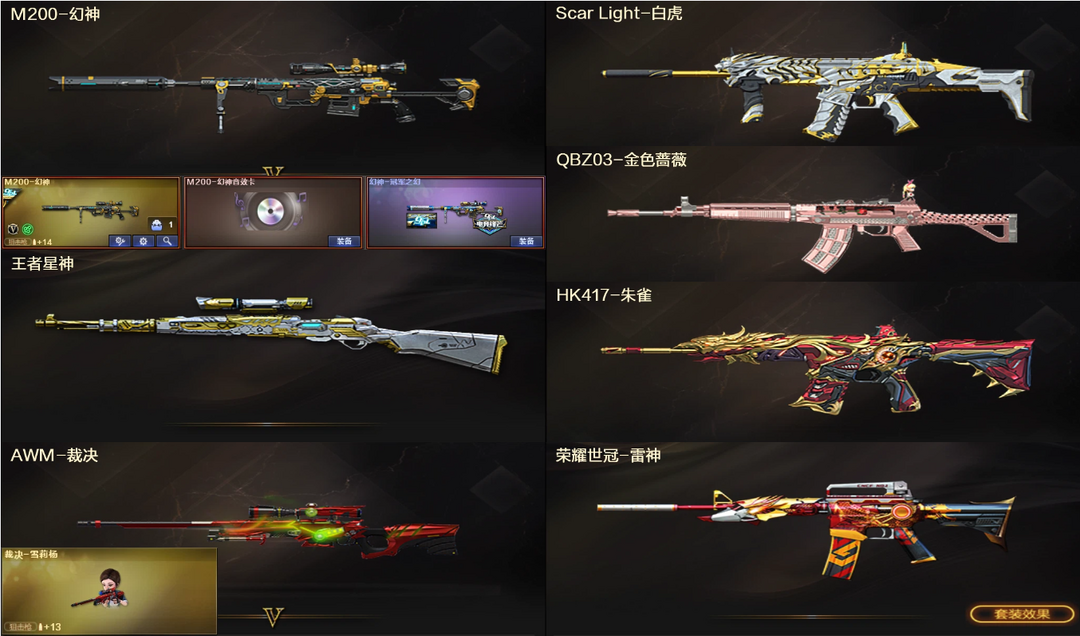 幻神冠军之幻音效卡+王者星神裁决✅QBZ蔷薇白虎朱雀+世冠火麒麟雷神+7满副✅4防貂蝉+死亡6烈龙