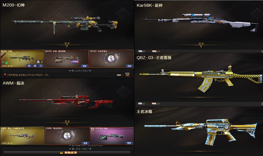幻神黄忠音效卡+裁决叶芒苍灵音效卡+星神❤QBZ蔷薇白虎朱雀+王者冰魄❤柯尔特COP+4防春小乔