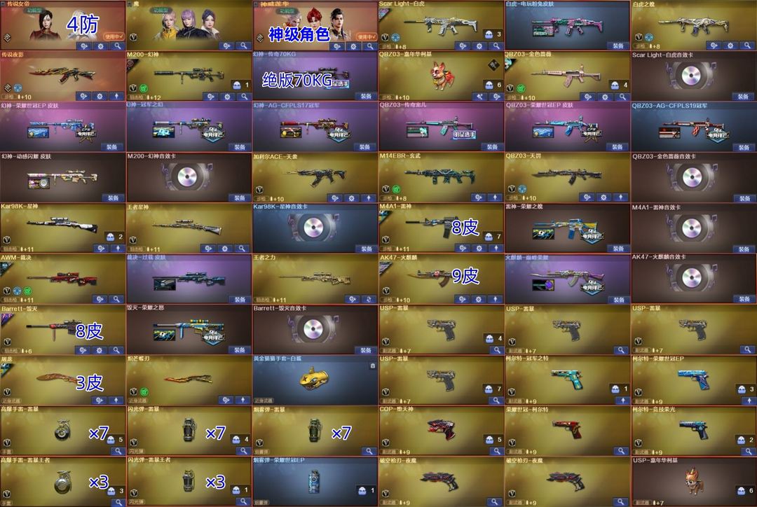 天花板幻神70KG✨白虎光海夜岚✨女帝莲华✨6色幻神带卡EP冠幻ag✨星神卡✨裁决卡✨金名单字ID然