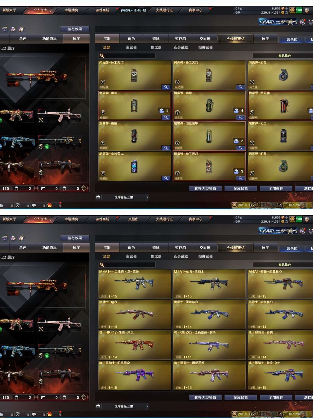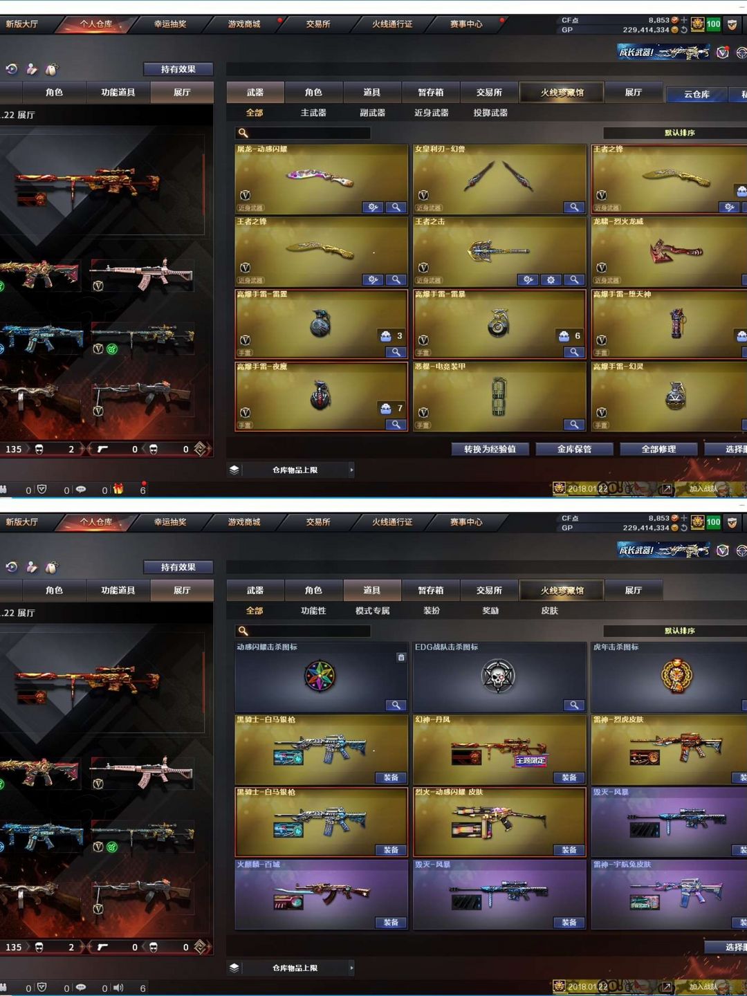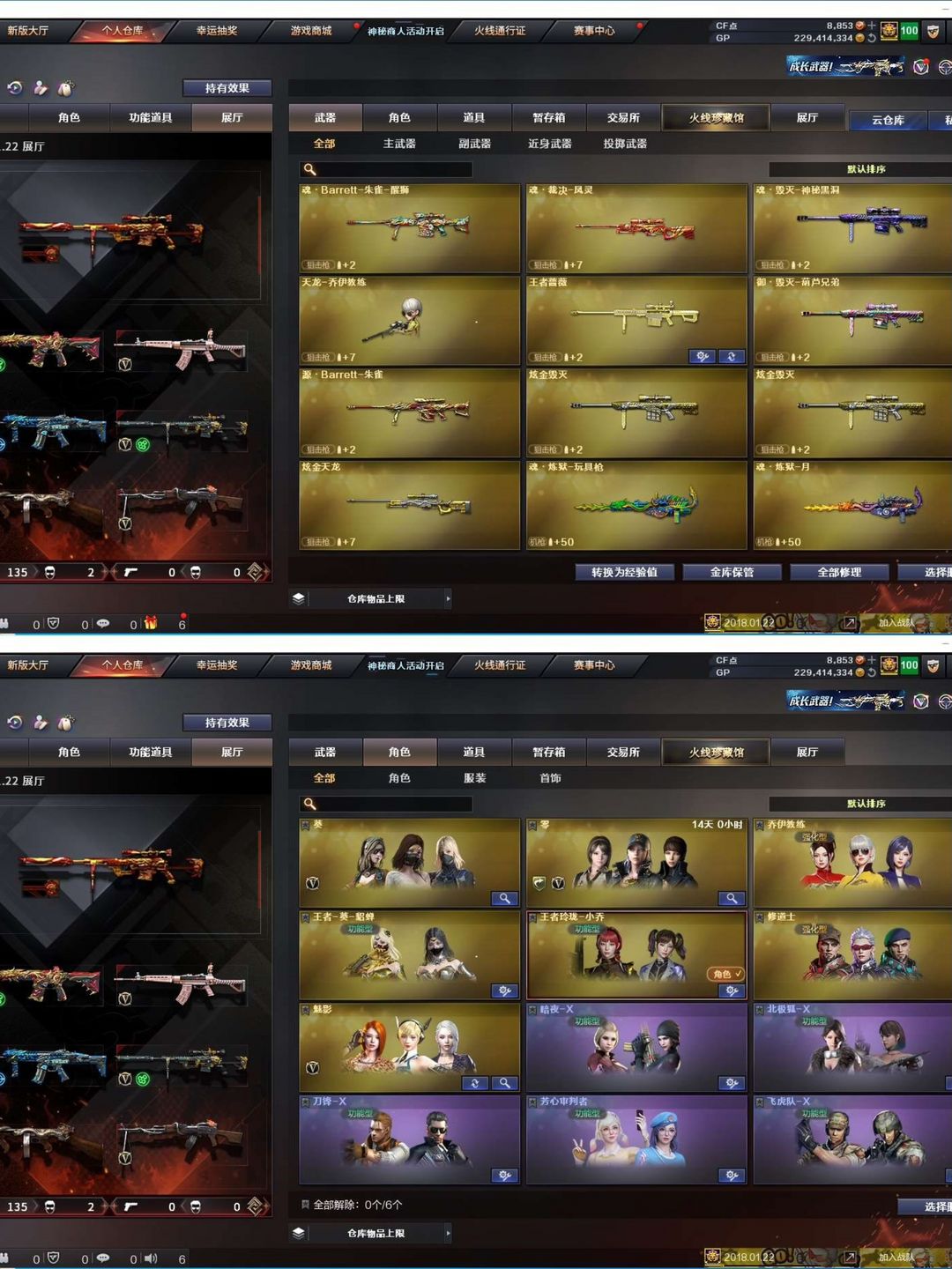 装备描述:【陕西一区/127vvip1】【6烈龙/6修罗】【m200-幻神/m200-幻神音效卡/幻神-丹凤】【柯尔特-竞技荣光/usp-神工天巧】【qbz03-金色蔷薇】【m4a1-雷神3/m4a1-雷神音效卡/雷神-宇航兔皮肤/雷神-烈虎皮肤/雷神-维纳斯皮肤/雷神-暗月/雷神-能量核心/雷神-虎将】【柯尔特-电竞装甲/沙鹰-幻兽】【barrett-毁灭2/barrett-毁灭音效卡/毁灭-星空/毁灭-风暴2/毁灭-暗月4】【ak47-火麒麟4/火麒麟-百城/火麒麟-cfstar2/火麒麟-心动糖果/火麒麟-平天大圣】【m4a1-黑骑士/m4a1-黑骑士音效卡/黑骑士耀金皮肤】【m4a1-黑龙/黑龙-能量核心】【hk417-朱雀】【烈火-动感闪耀 皮肤】【ak47-无影/无影-神兵利器】【ak47-黑武士/黑武士-锦绣游龙】【awm-天龙/天龙-秘银/天龙-能量核心】【barrett-极光/极光-能量核心】【m4a1-死神/死神-秘银2/m4a1-千变】【汤姆逊-烈龙9】【rpk-盘龙4】【加特林-炼狱/炼狱-风暴/炼狱-悦蓝】【死亡之眼】【沙鹰-修罗6/修罗-cfstar/修罗-能量核心4