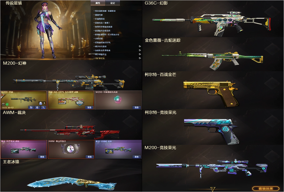 传说星骇3防☎幻神新AG竞技+裁决运输船叶芒苍灵音效卡☎G36C幻影金色蔷薇☎2柯尔特王者冰锋