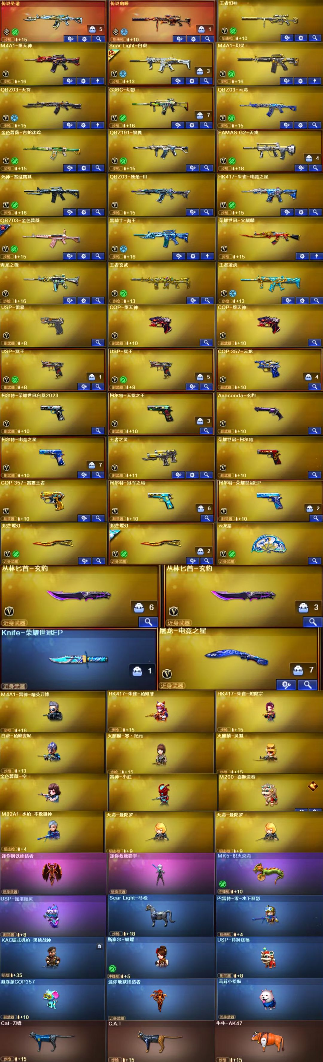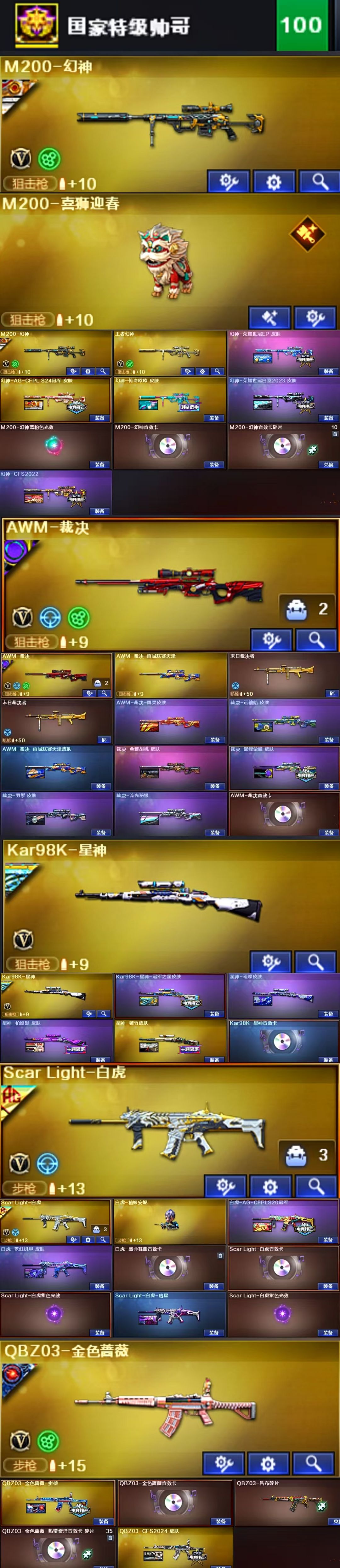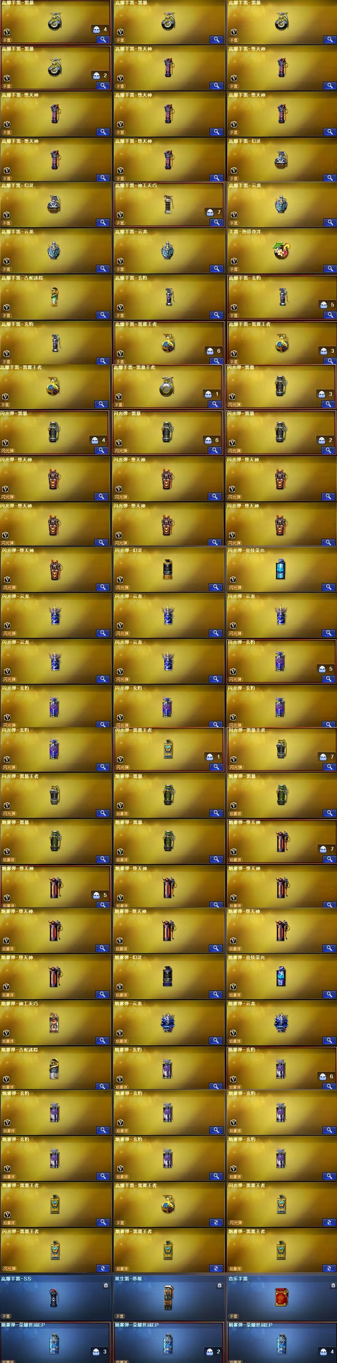 限制: 租号3次及以上 |装备描述:王者武器:王者凌虎;闪光弹-雷暴王者;高爆手雷-雷暴王者;王者冰锋;王者玄武;闪光弹-雷霆王者-觉醒版;高爆手雷-雷霆王者;王者之灵-觉醒版;青龙之魄;COP 357-雷霆王者-觉醒版;王者幻神-觉醒版;闪光弹-雷霆王者;烟雾弹-雷霆王者-觉醒版;烟雾弹-雷霆王者;高爆手雷-雷霆王者 英雄武器:荣耀世冠-火麒麟;Barrett-碧霄极光;烟雾弹-玄豹;闪光弹-玄豹;高爆手雷-玄豹;丛林匕首-玄豹;USP-冥王;Anaconda-玄豹;龙啸;传说圣谕;FAMAS G2-天戎;QBZ03-天罚;AK47-火麒麟;泡泡象COP357;柯尔特-冠军之特;屠龙;柯尔特-荣耀世冠白鲨2023;G36C-幻影;M200-幻神;AA-12-雷霆;传说幽瞳;炽芒蝶刃;闪光弹-竞技荣光;闪光弹-堕天神;COP-堕天神;高爆手雷-堕天神;M4A1-堕天神;麒麟刺-堕天神;龙啸-堕天神;烟雾弹-堕天神;M4A1-雷神;柯尔特-无冕之王;闪光弹-云龙;超新星-热带奇洋;龙啸-热带奇洋;汤姆逊-烈龙;M4A1-黑龙;烟雾弹-云龙;COP 357-云龙;USP-雷暴;斩神刀-雷暴;高爆手雷-雷暴;闪光弹-雷暴;烟雾