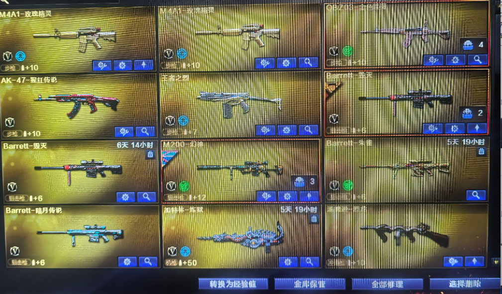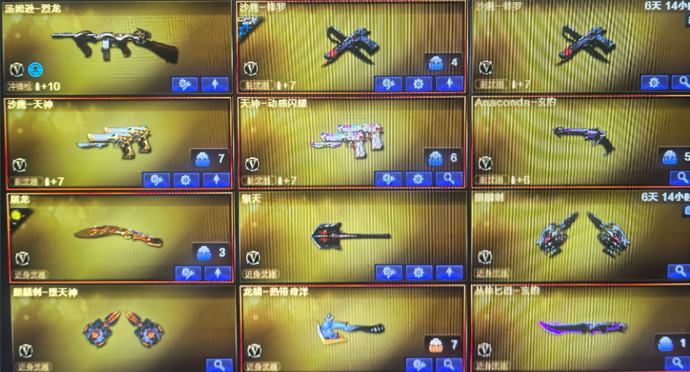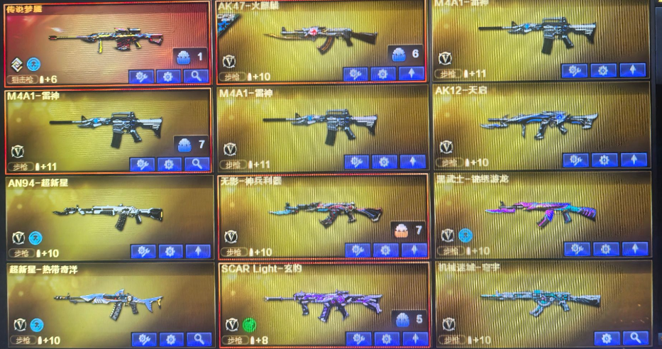 装备描述:AK47-火麒麟;Barrett-毁灭;沙鹰-修罗;M200-幻神;麒麟刺-堕天神;M4A1-雷神;Barrett-碧霄极光;烟雾弹-玄豹;高爆手雷-玄豹;闪光弹-玄豹;SCAR Light-玄豹;丛林匕首-玄豹;Anaconda-玄豹;QBZ03-金色蔷薇;超新星-热带奇洋;龙啸-热带奇洋;手雷-热带奇洋;黑武士-锦绣游龙;传说梦魇;龙啸-烈火龙威;天神-动感闪耀;手雷-动感闪耀;无影-神兵利器;AK47-火麒麟;Barrett-暗月传说;Barrett-毁灭;AN94-超新星;AK-47-猩红传说;M4A1-玫瑰精灵;汤姆逊-烈龙;AK12-天启;沙鹰-修罗;沙鹰-天神;屠龙;擎天。(封号起诉)