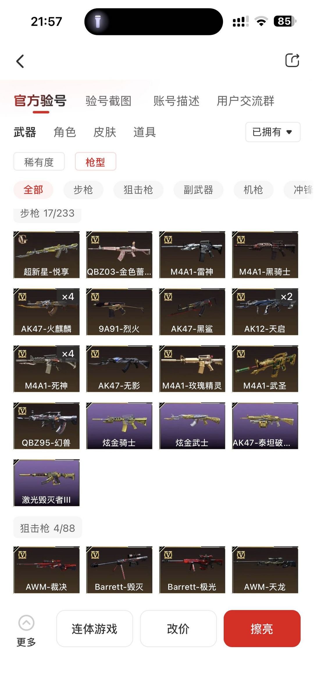 稀有幻兽套qbz带音效卡 裁决带皮 英雄角色妮妮 封号必追账号已备案