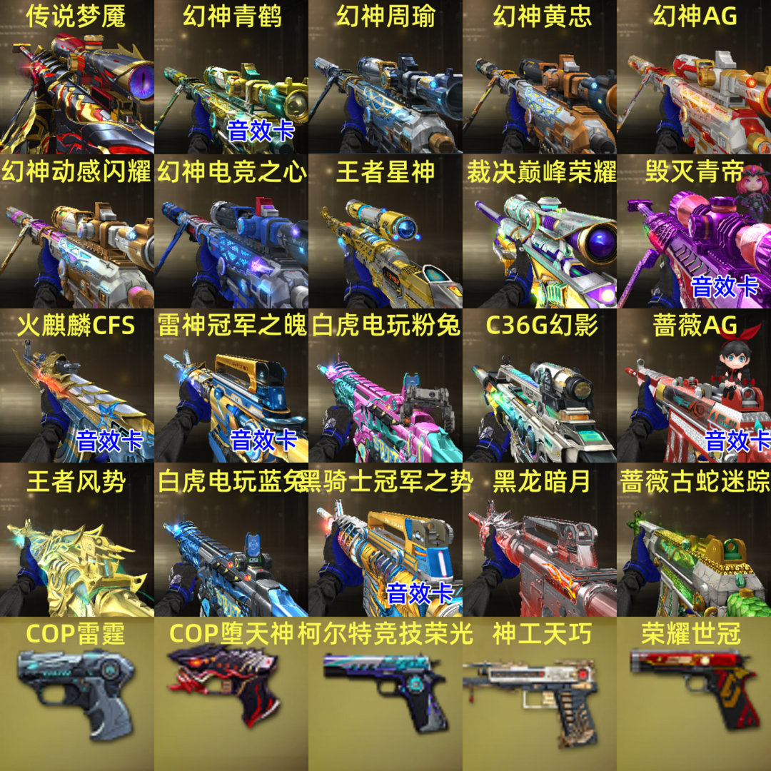 幻神6皮:24ag周瑜电竞之星动感黄忠青鹤幻神音效卡/G36C幻影/裁决巅峰荣耀/满手枪/6烈6盘蝴