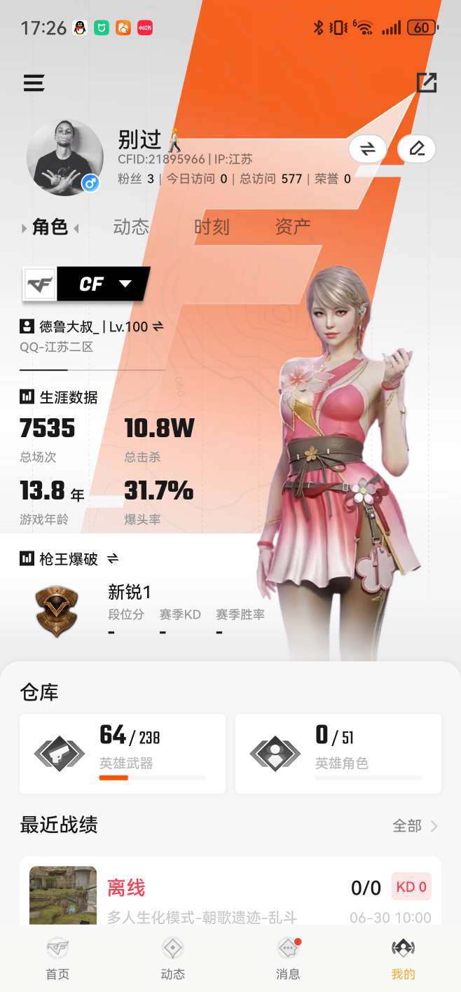 游戏区服:穿越火线-电信区-江苏二区