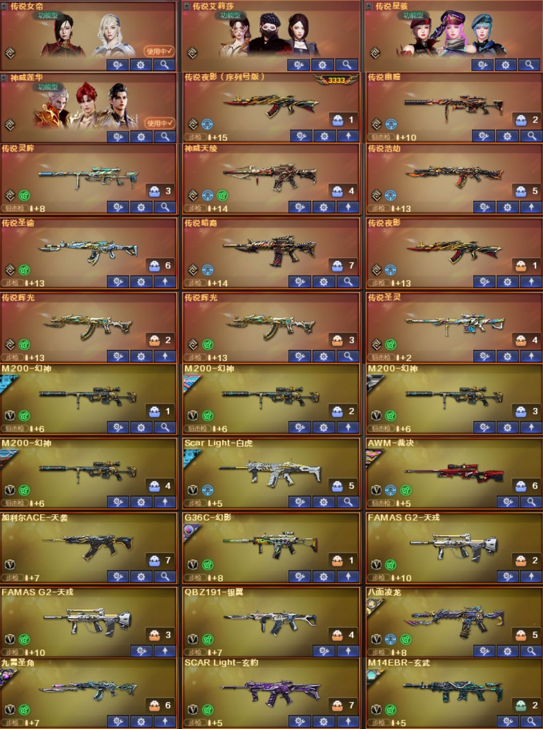 幻神光海白虎光海⭐15传说女帝莲华序列3333⭐幻神卡YZK权22皮⭐裁决卡紫罗兰6皮⭐白虎常旭十皮