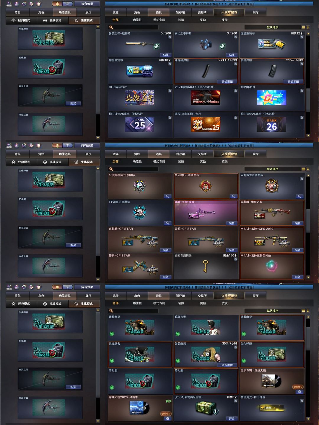 装备描述:☢️生化号|炽芒蝶刃|隼·生化增伤|蝴蝶毒刺清道夫6烈|双面神裁决|生化背包不换弹显血|全道具 喜欢本账号请点 ☆收藏☆ 方便下次租用,谢谢光临惠顾!