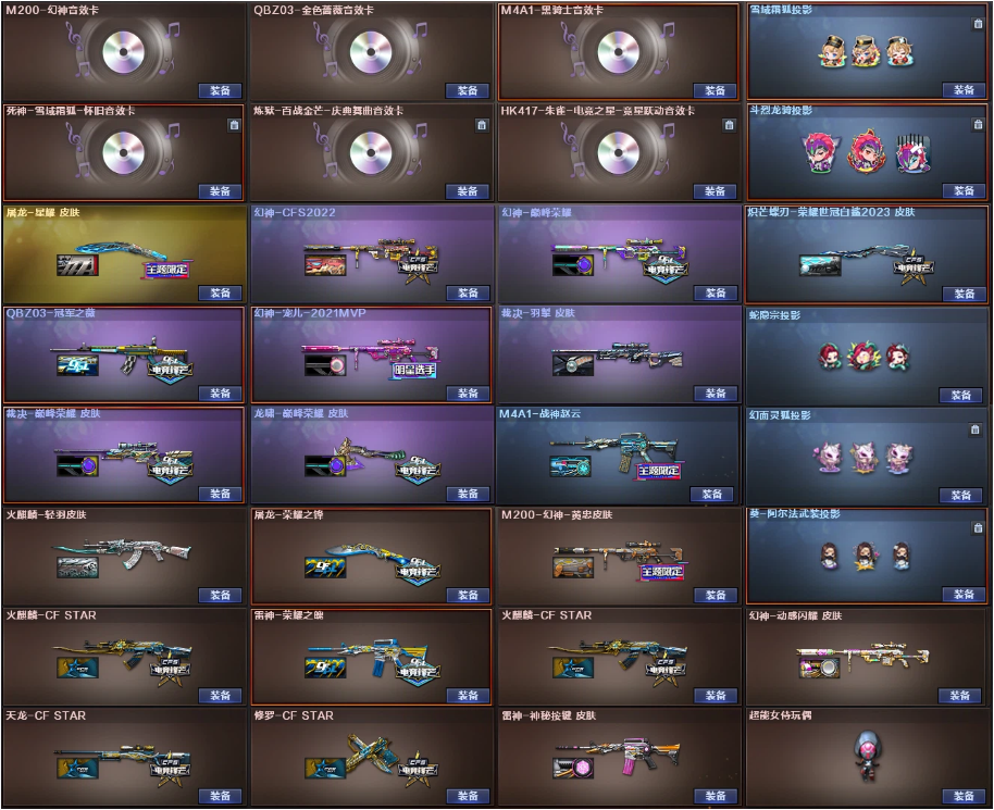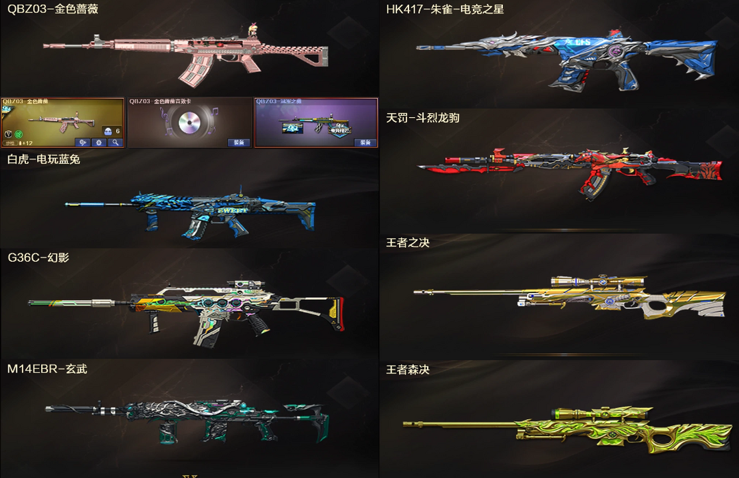传说暗裔4防女帝⭐幻神7皮宠儿巅峰音效卡+星神裁决⭐QBZ冠军音效+幻影白虎玄武7满副炽芒⭐死亡4烈