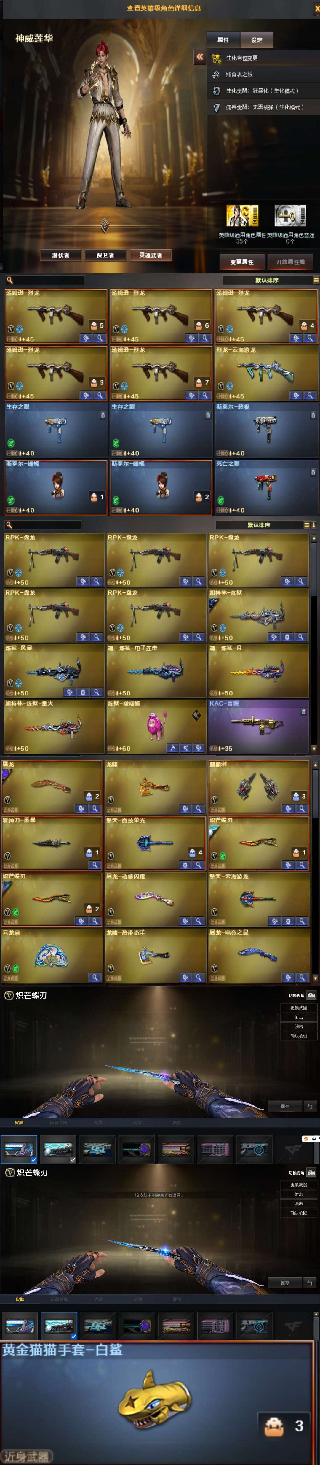 神威莲华炼狱啵啵狮白鲨破浪双炽芒蝶刃+鲨臂❤双蝴蝶全生化皮肤❤白鲨AG幻神三件套冠军之特双雷暴