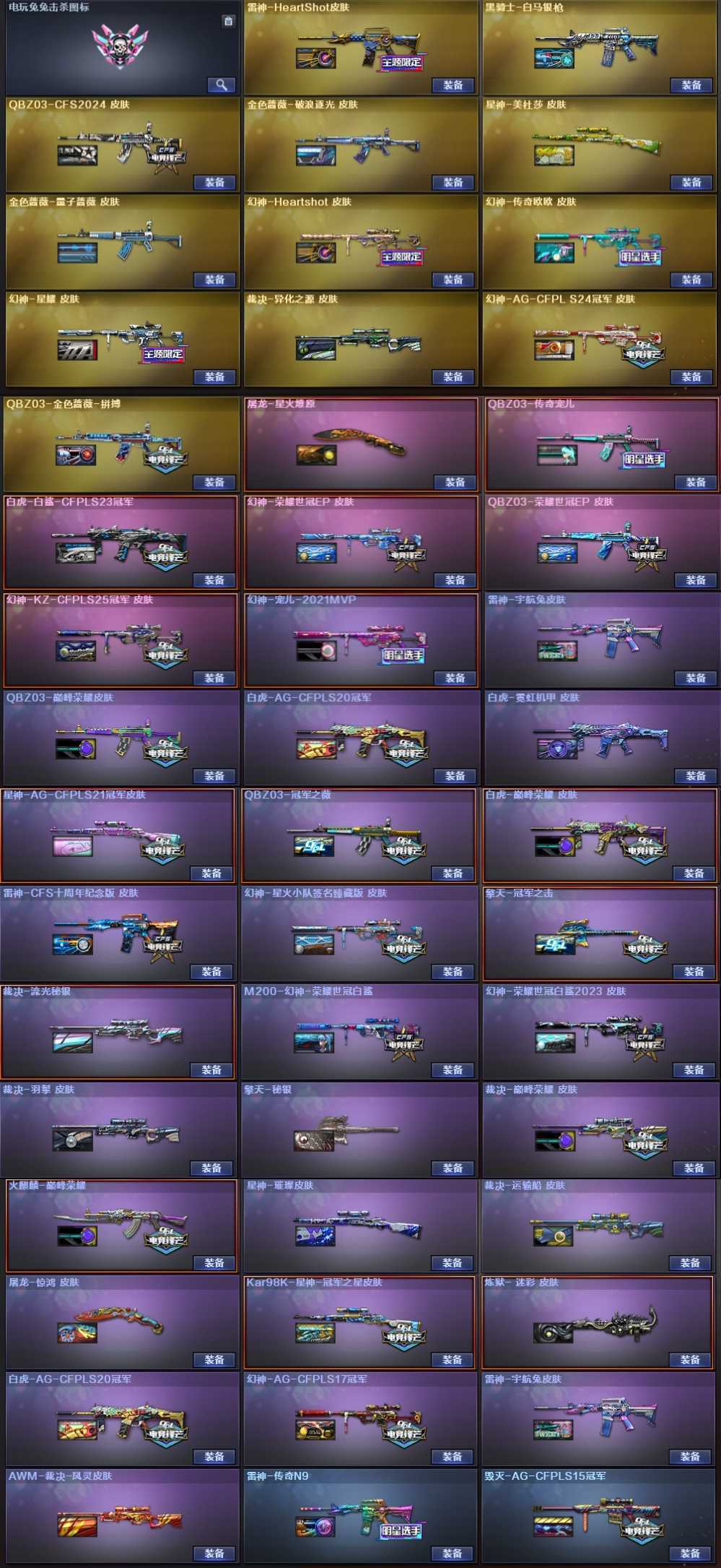 kz心动①③皮幻神卡幽瞳AG④星神卡秘银⑦裁决卡⭐天袭银翼幻影白鲨⑥白虎⭐隼⑥列盘蝴蝶