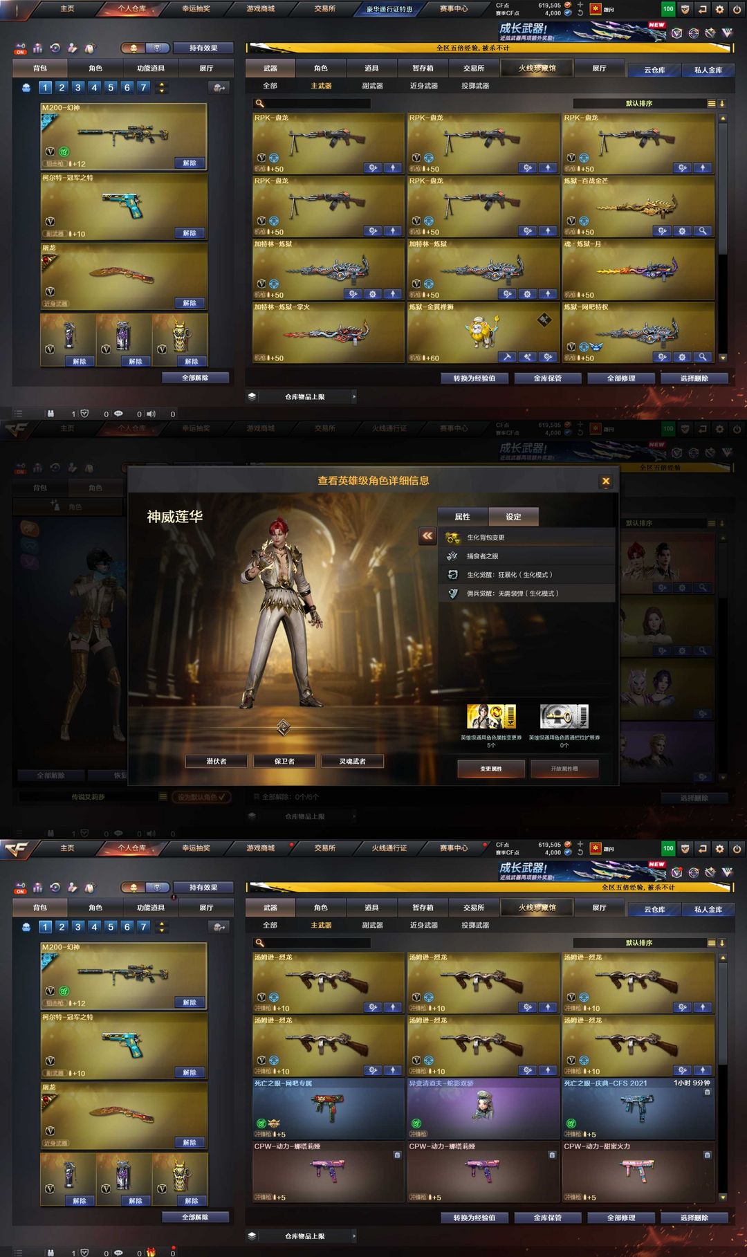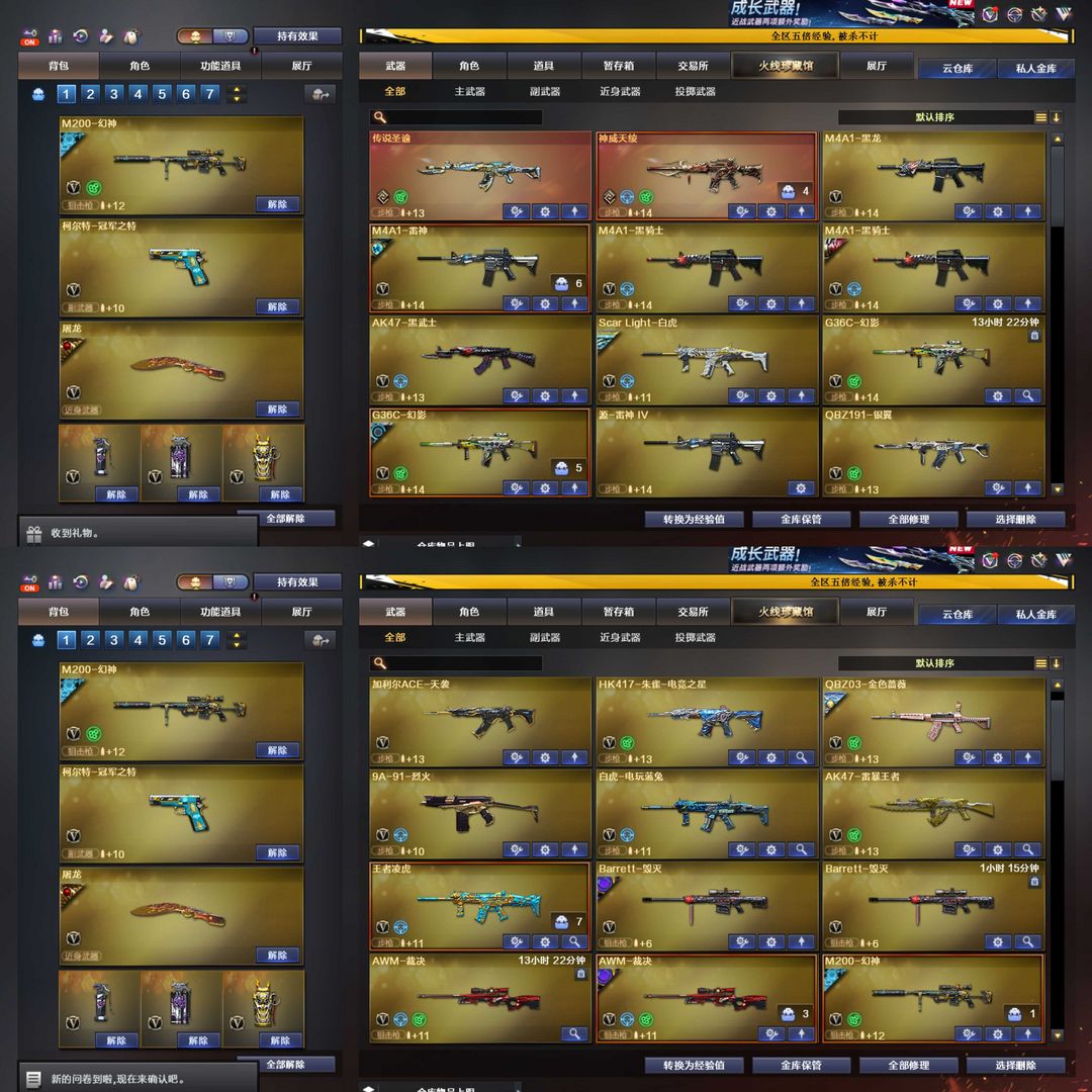 神威莲华天凌光海夜岚艾丽莎天戎天袭G36EP套4把冠特3把ep7把冥王手抢满配清道夫小人抢六烈6盘