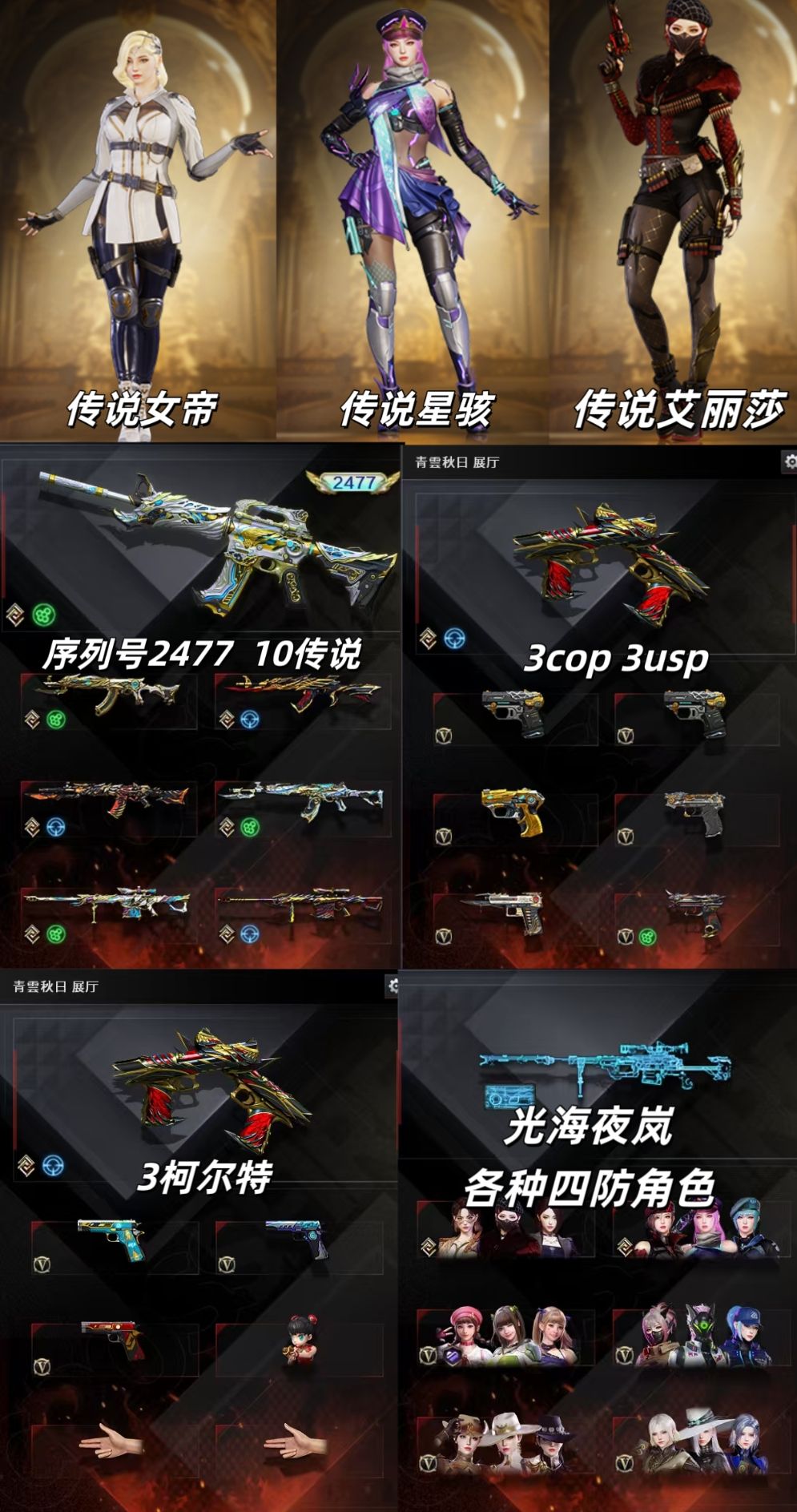 传奇幻神光海夜岚套女帝艾莉莎星骇幽瞳金狮子6盘6烈毒蝰星神套裁决音天戎玄豹套蝶刃冠特刃12把副武器