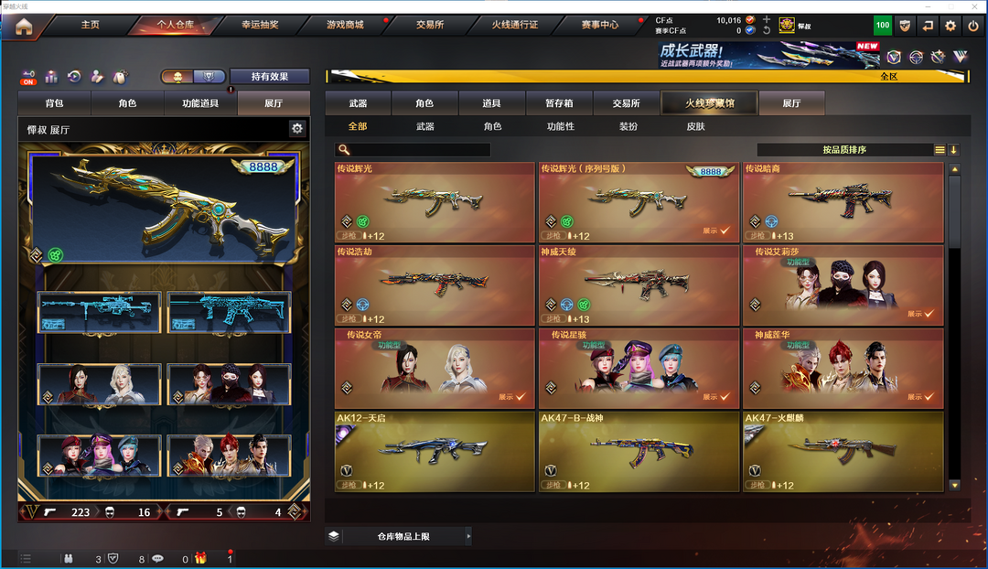 限制: 租号5次及以上 |装备描述:四个8序列号辉光双光海夜岚幻神+白虎浩劫神威天凌莲华7幻神15个皮肤女帝星骇艾莉莎天戎天袭蝴蝶刀冥王妮妮幻兽套三百V 欢迎新老客户!道具齐全!极品双全装号!收藏不迷路!
