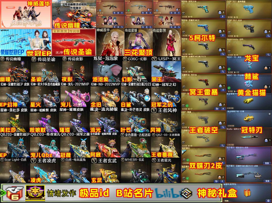 限制: 租号5次及以上 | 撤单率<50%才可租用此帐号装备描述:【装备道具】:神威莲华/传说影煞/传说星骇/传说圣谕/传说夜影/传说幽瞳★幻神-荣耀世冠EP 皮肤/幻神-星火小队签名臻藏版 皮肤/幻神-荣耀世冠白鲨2023 皮肤/M200-幻神-N9-2022MVP/幻神-宠儿-2021MVP/幻神-冠军之幻/星神-美杜莎 皮肤/星神-枪娘默 皮肤/星神-璀璨/裁决-叶芒苍灵 皮肤/裁决-流光秘银/冠军之魄雷神-荣耀之魄/金色蔷薇-枪娘阿敏 皮肤/QBZ03-荣耀世冠EP 皮肤/QBZ03-冠军之薇/QBZ03-传奇宠儿/世冠白鲨炽芒蝶刃-破浪逐光/★G36C-幻影/柯尔特-荣耀世冠EP/USP-冥王/Anaconda-玄豹/柯尔特-荣耀世冠白鲨2023/王者凌虎/王者玄武/王者星光/王者破空枪刃/王者冰锋/荣耀世冠-柯尔特/柯尔特-冠军之特/USP-雷暴/COP-幻灵/M14EBR-玄武/★幻神音效卡/星神音效卡/金色蔷薇音效卡/白虎音效卡/毁灭音效卡/裁决音效卡/炼狱音效卡★关小雨/枪娘樱/隼/司雨/毒蝰术士/荆棘/王者潘多拉/王者鹰/炼狱-泡泡象/炼狱-枪娘掣电/斯泰尔-蝴蝶/斯泰尔-枪娘暗刃/MAC-10-千针棘鲨/MAC-10-龙宝/