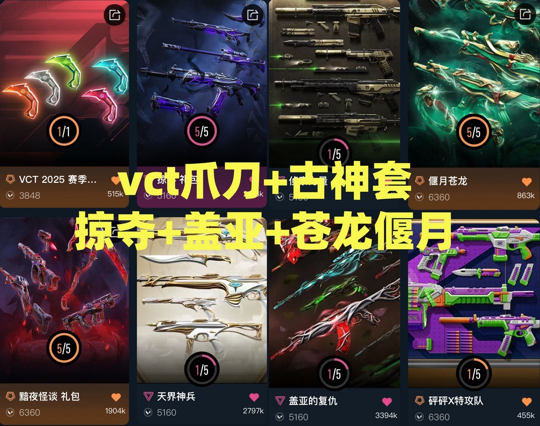 可排❤️满炫彩VCT爪刀❤️掠夺掠影套❤️天界鬼魅古神怪谈套❤️砰砰盖亚偃月苍龙套侦查力量❤️双城
