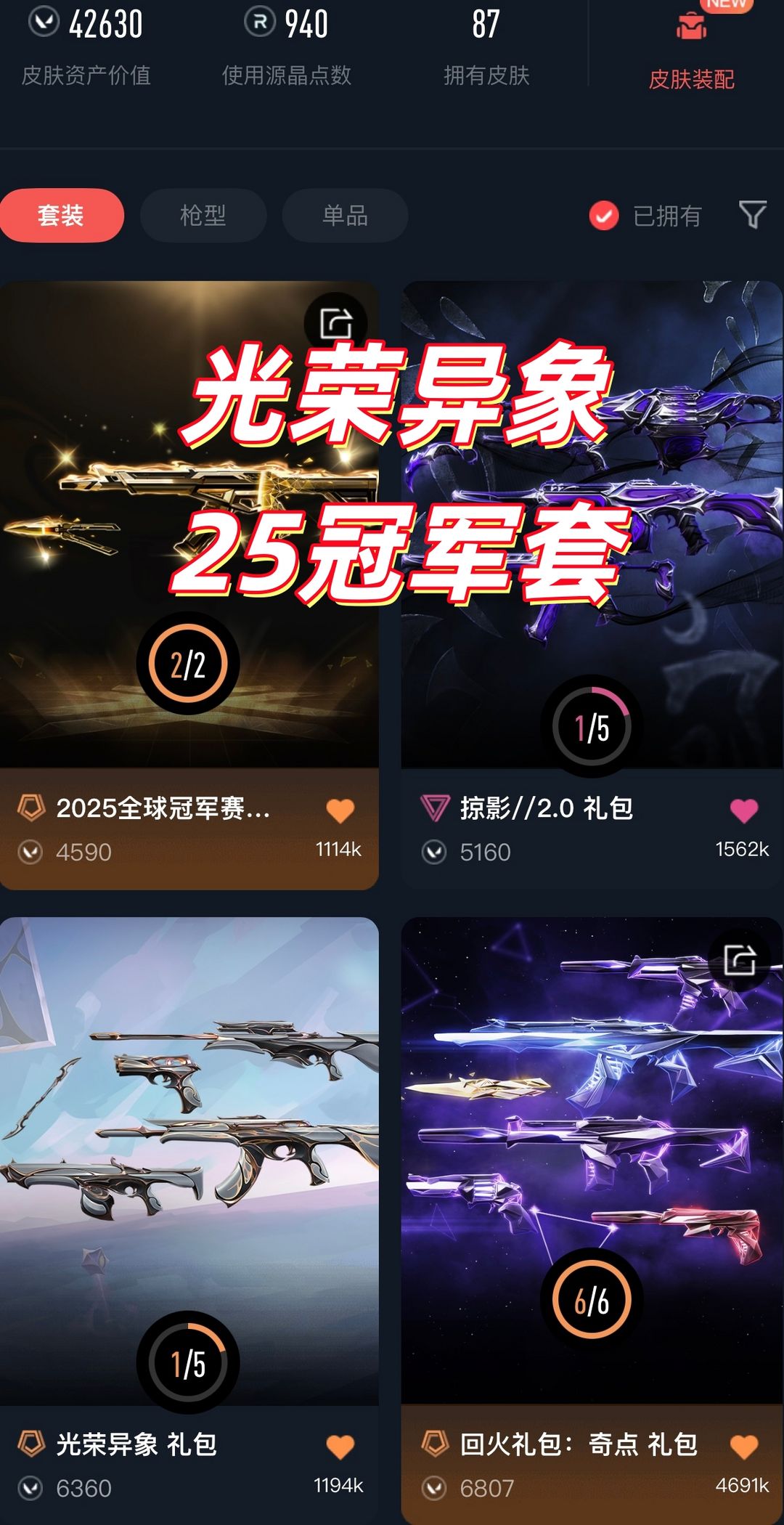 可排✅光荣异象25冠军套⭐显卡爪奇点蝴蝶刀塑水宗混沌盖亚洪荒⭐781幻影弃王冥狙天界戍卫奇点正义鬼魅