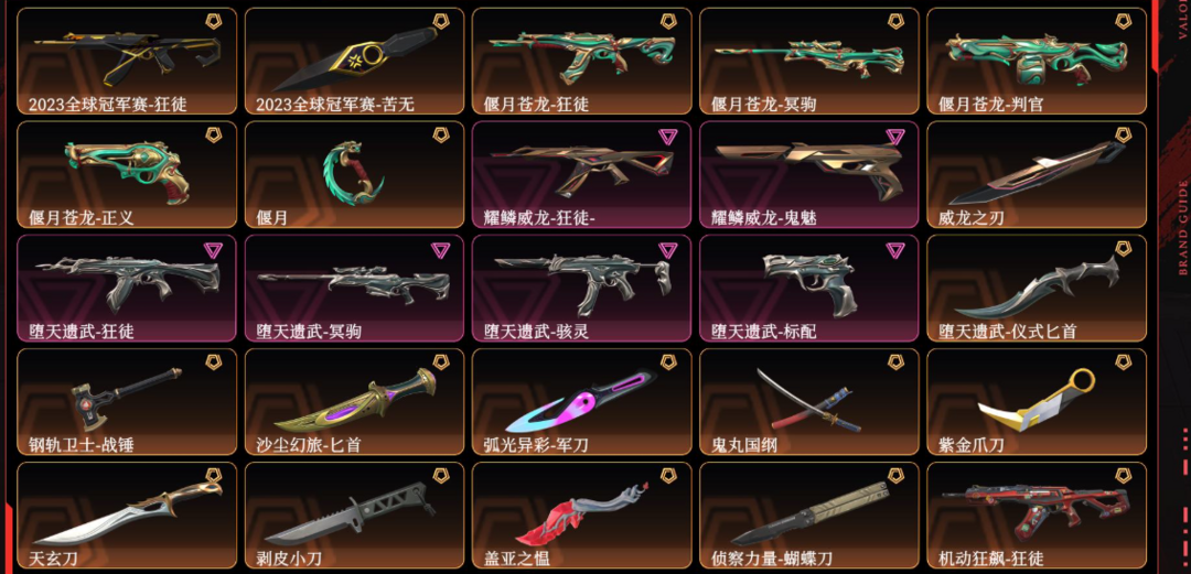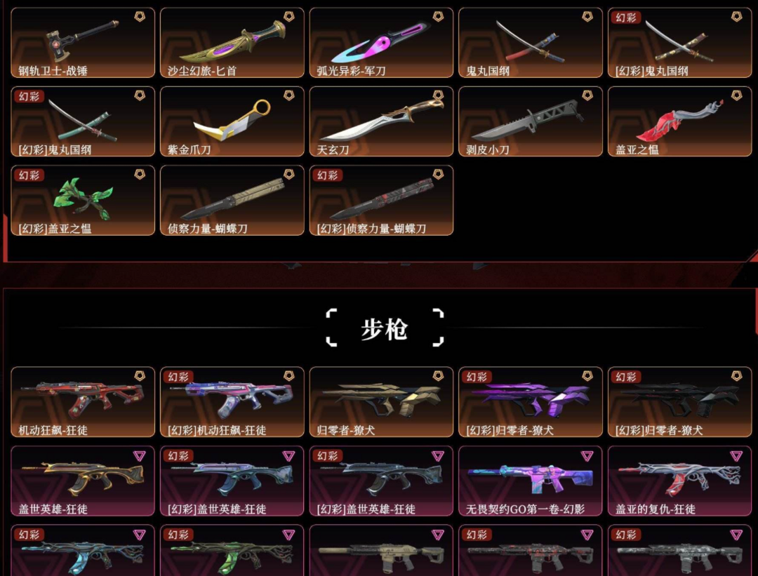 禁竞技赛/可排23冠军套/堕天遗套/威龙套/偃月套/紫金爪刀/蝴蝶刀/天玄刀/剥皮小刀/多幻彩枪刀