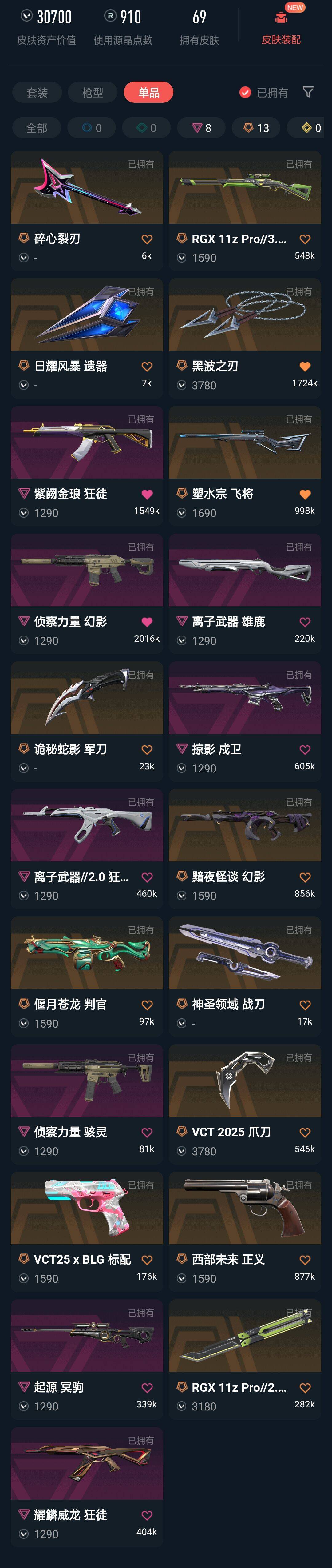 可排⚡vct爪刀⚡黑波之刃⚡离子耀鳞紫金狂徒⚡塑水宗飞将⚡掠影戍卫⚡偃月苍龙判官