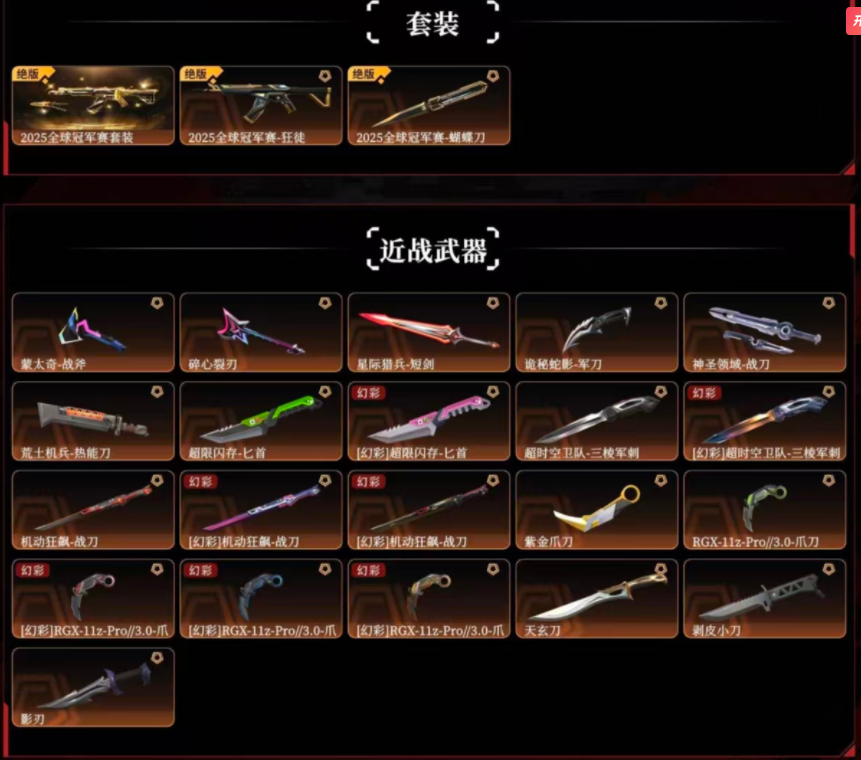 2025冠军✨超时空混沌序曲塑水宗盖亚的复仇紫金纪元洪荒光荣盖世VCT25军刺军刀爪刀剥皮刀影刃