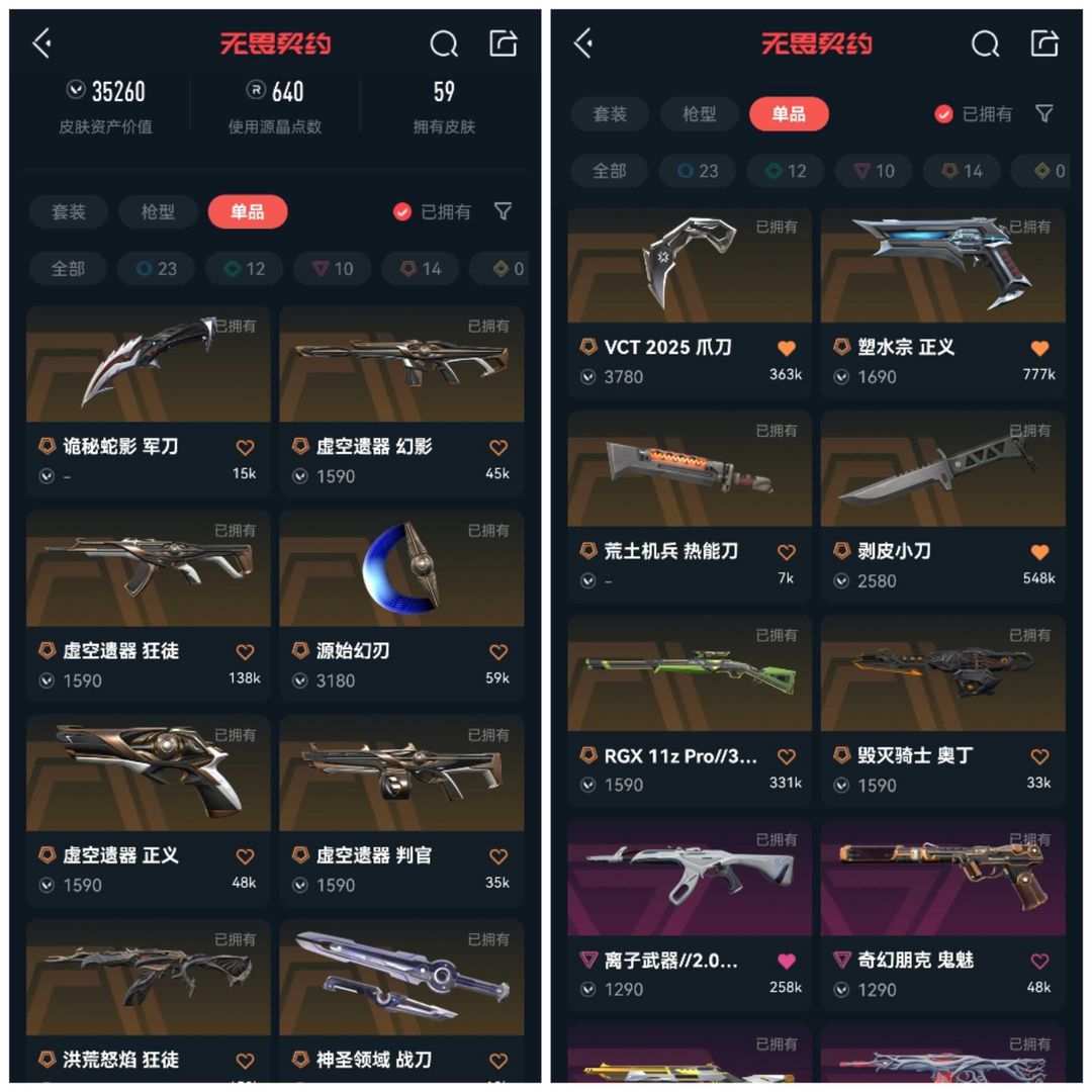 可排位虚空遗器套✨离子2.0AK✨VCT2025爪刀✨剥皮小刀✨盖亚狂徒✨侦察幻影✨掠影塑水宗海洋之
