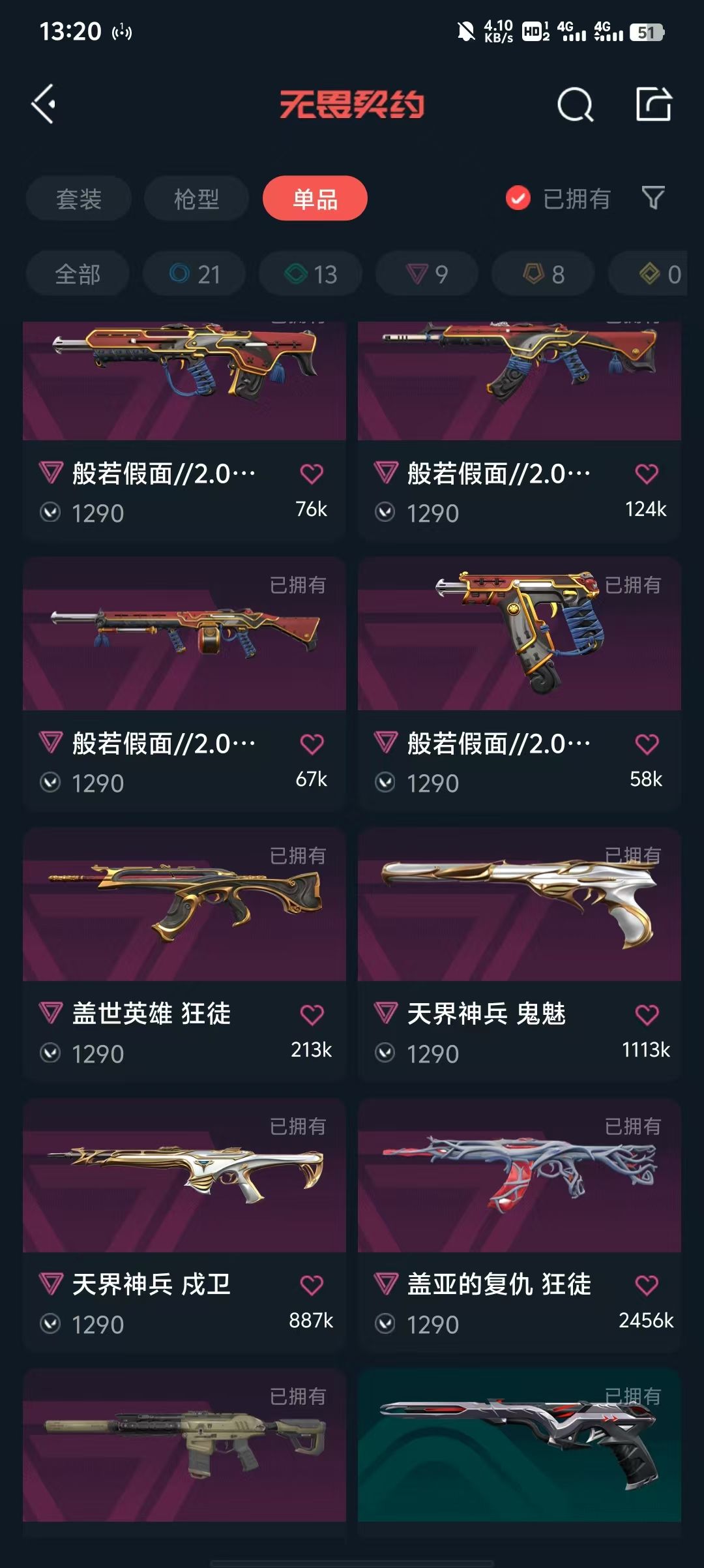 武器皮肤数量:52