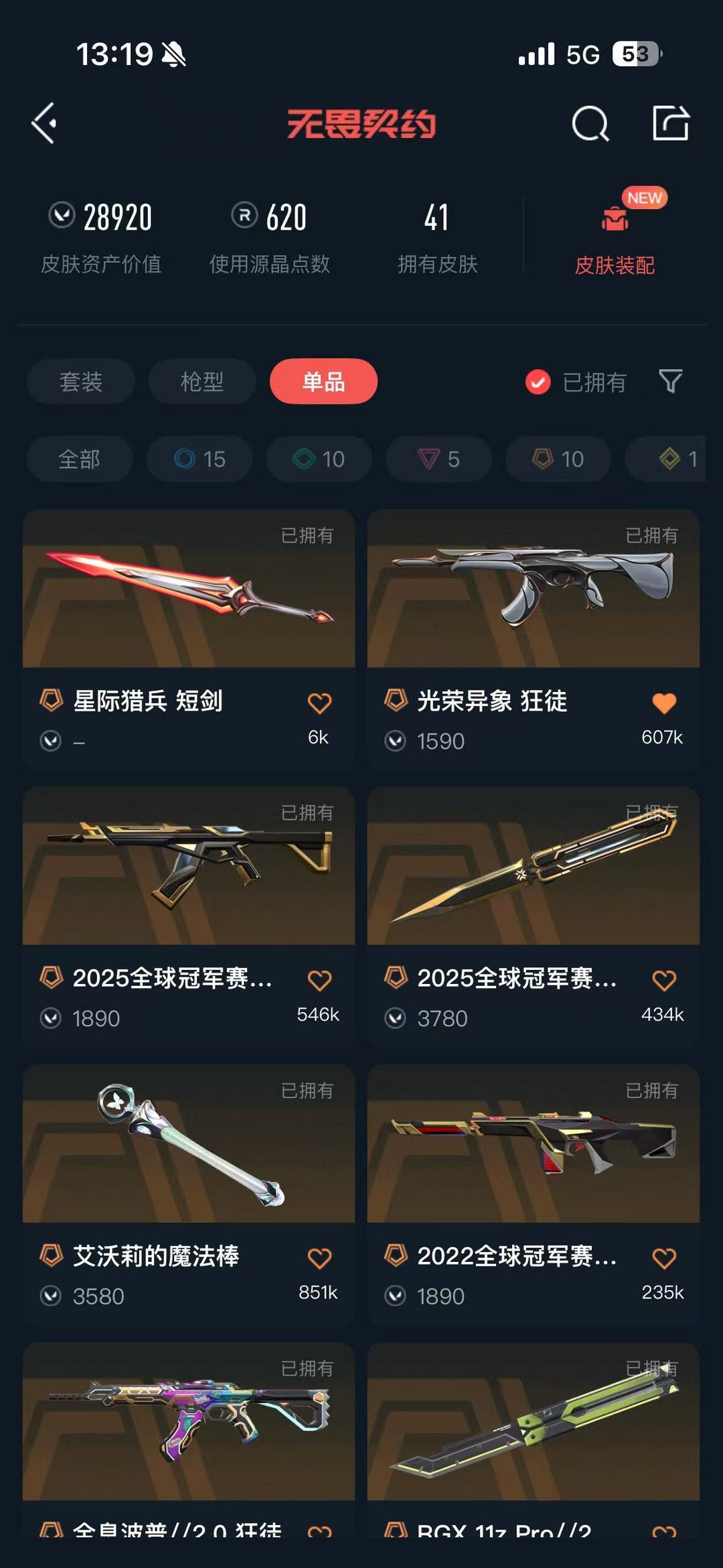 装备描述:英雄数量: 18 武器皮肤数量: 41 传奇数量: 10 终极数量: 1 卓越数量: 5