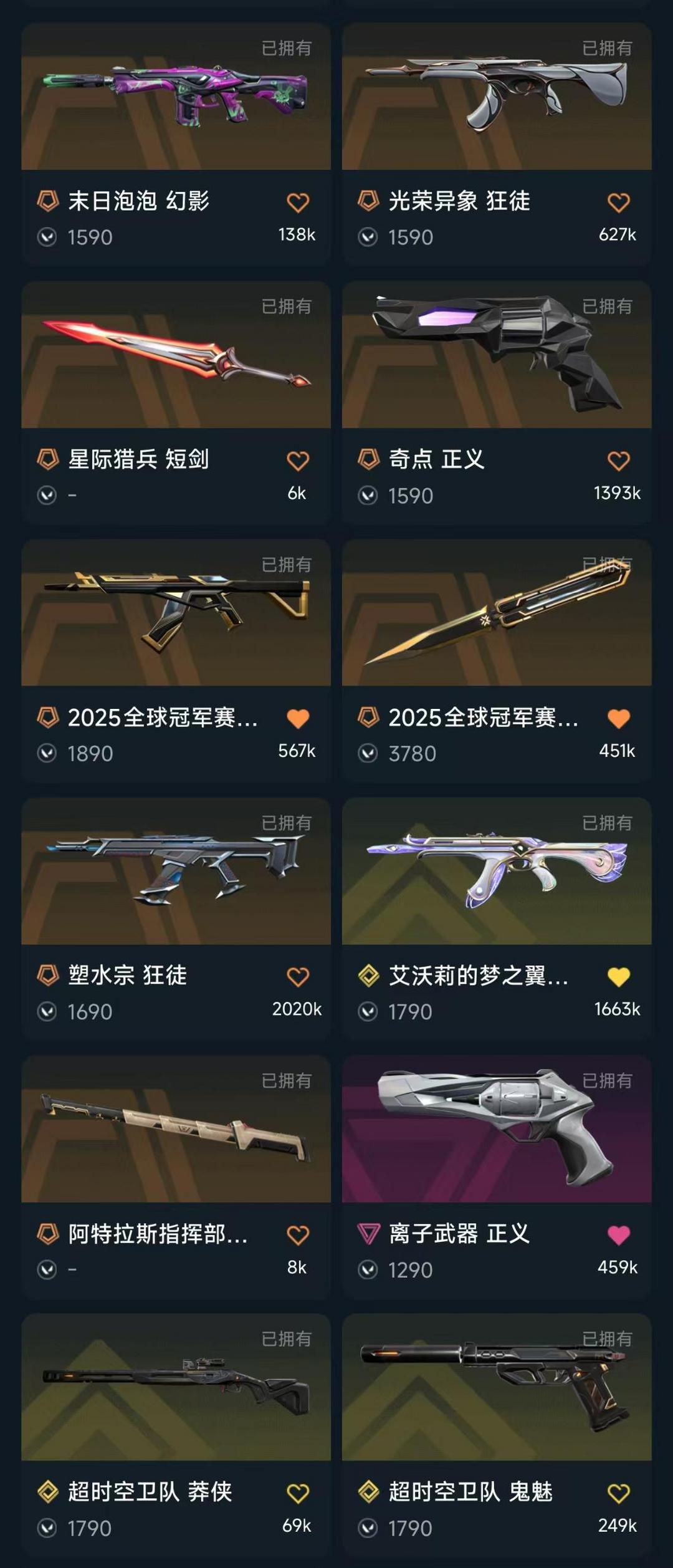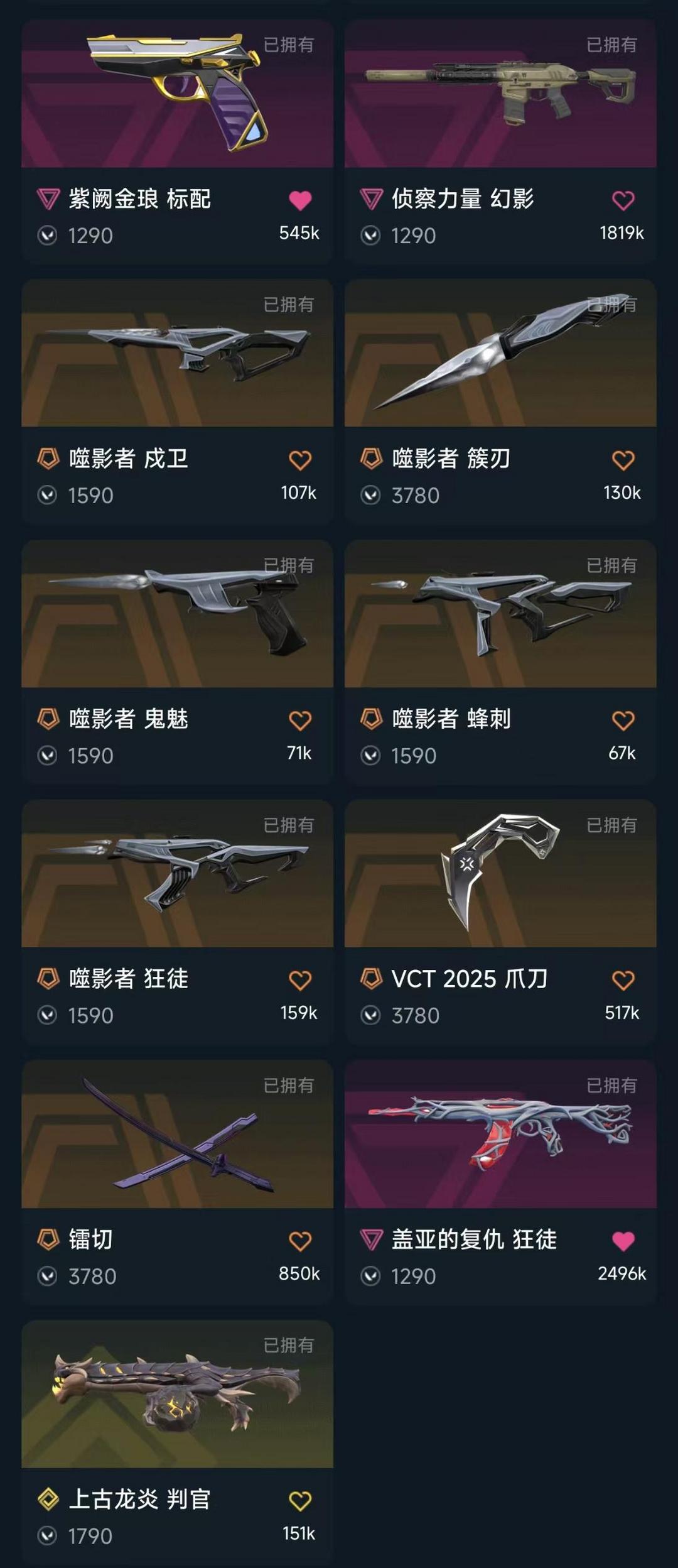冻结点号主解冻 ORA颗秒套2025冠军套超时空卫队套噬影者套VCT2025爪刀塑水宗猫猫狂徒