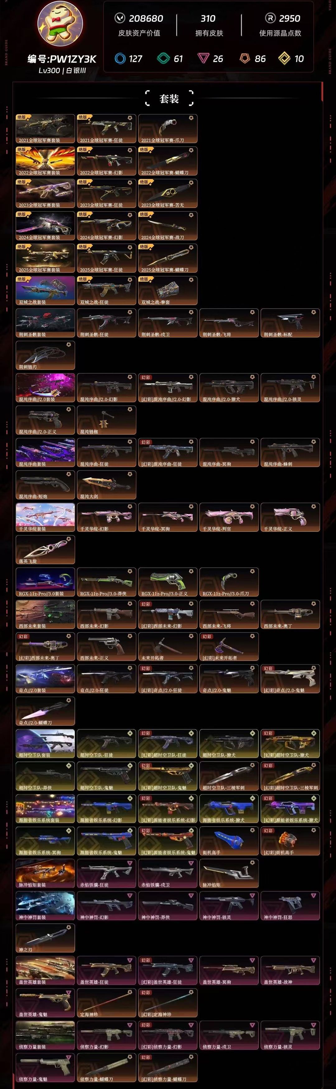 武器皮肤数量:310