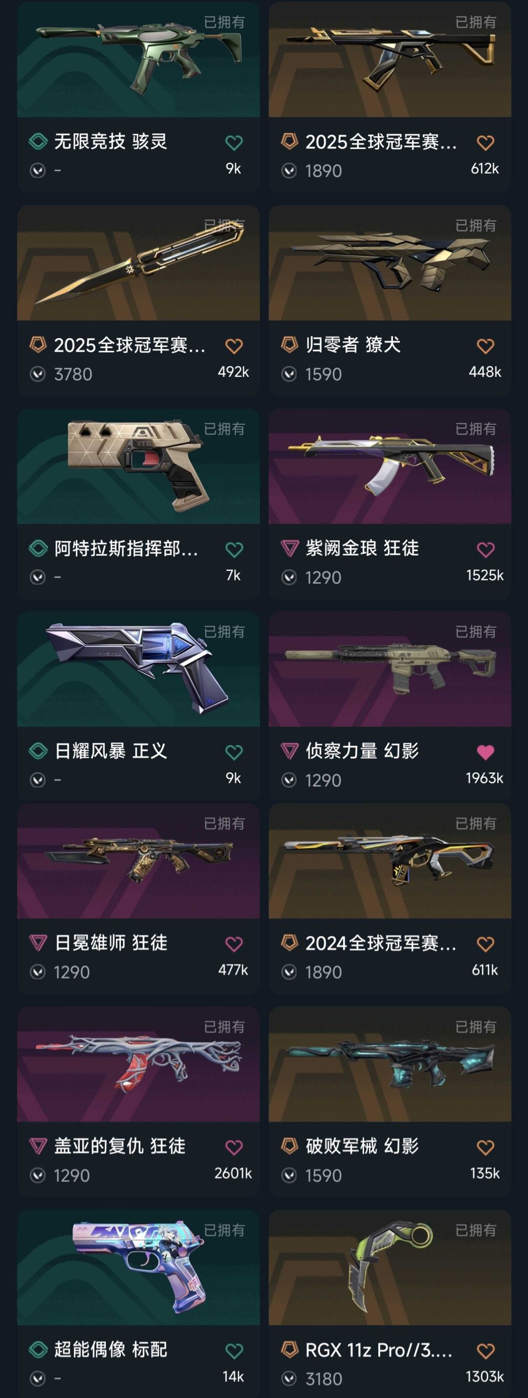 可排6万库存!25冠军24冠军套♉紫金盖亚侦察力量♐RGX爪刀奇点正义♏金刀归零者