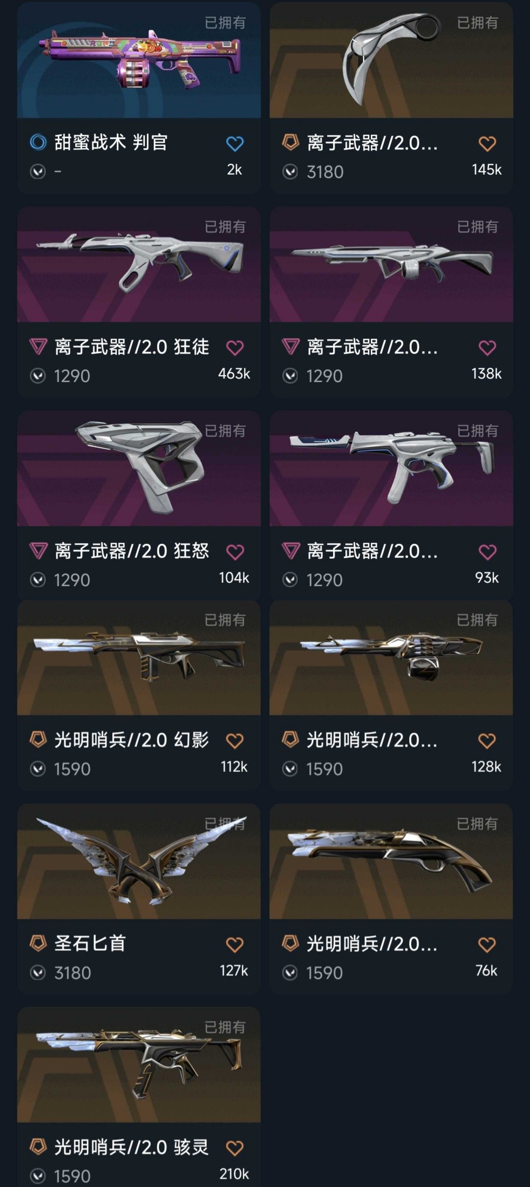 21/22冠军套8万库存♉艾沃莉千灵华绽♐离子2.0礼包光明哨兵2.0套♏混沌蝴蝶刀塑水宗正义