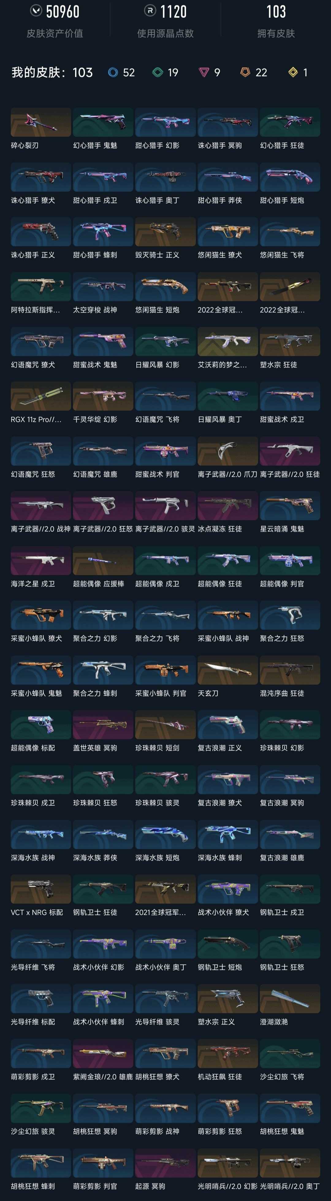 武器皮肤数量:103