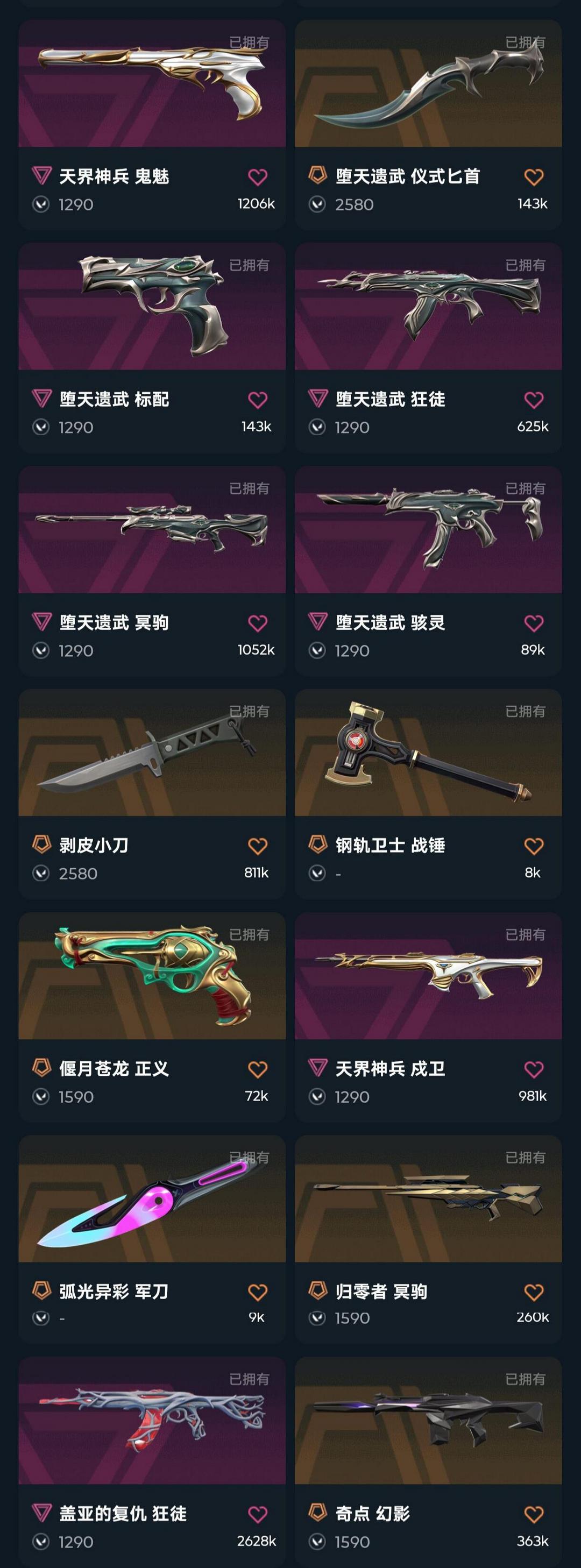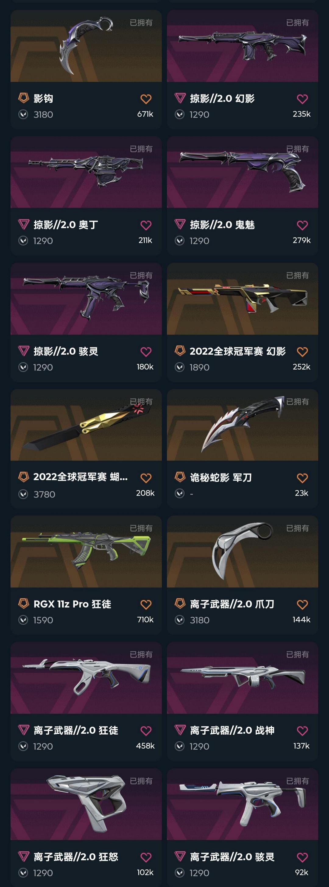 武器皮肤数量:166