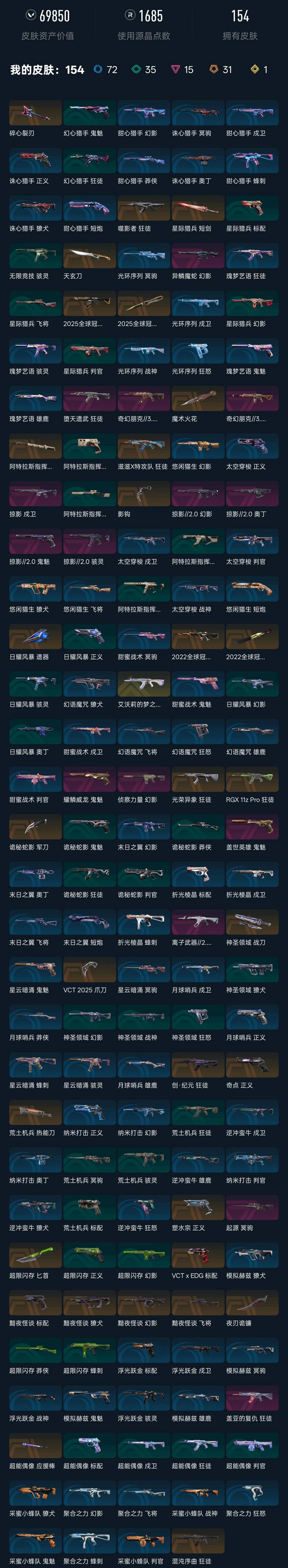 武器皮肤数量:167