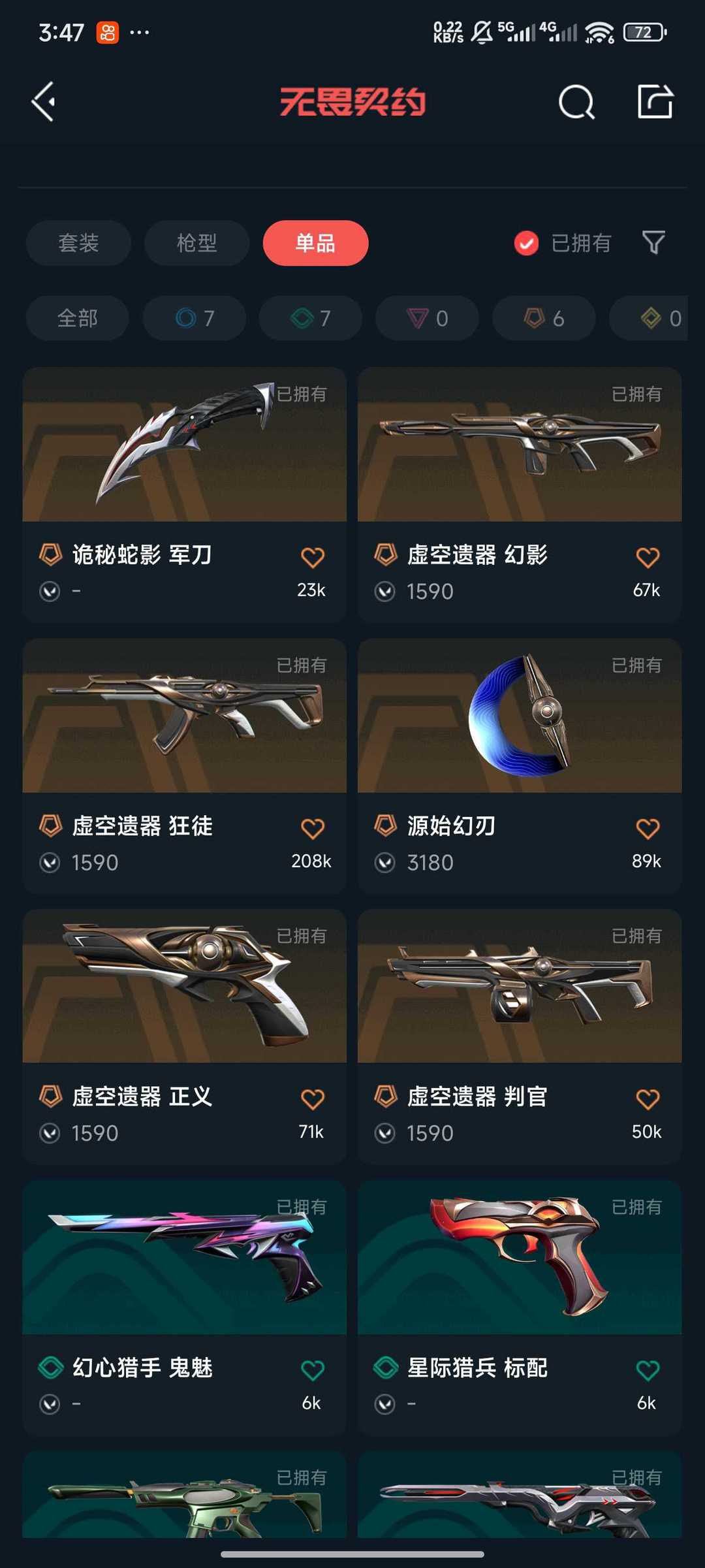 虚无套装❤️诡秘军刀❤️带妹小号❤️虚空狂徒❤️虚空幻影