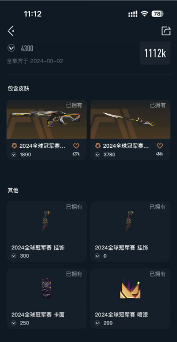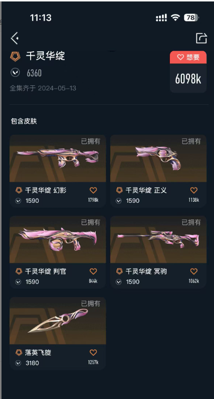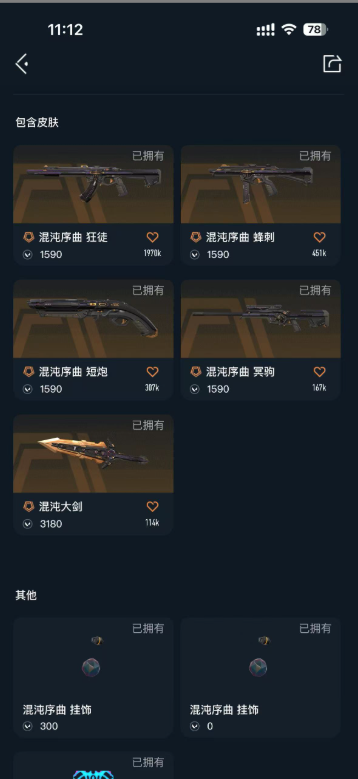 装备描述:24冠军套,威龙套,混沌 塑水宗,显卡1.0 盖亚,莲花1.0 西部左轮 781协议 PRX标配 剥皮小刀