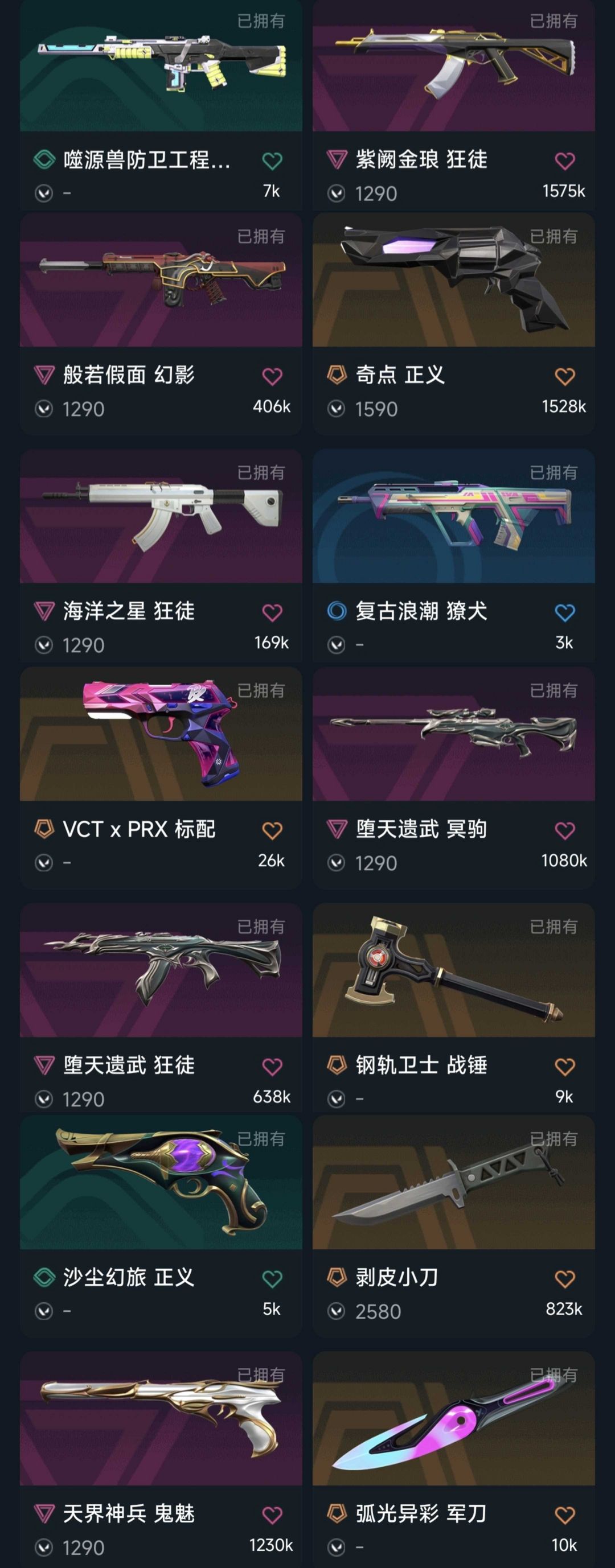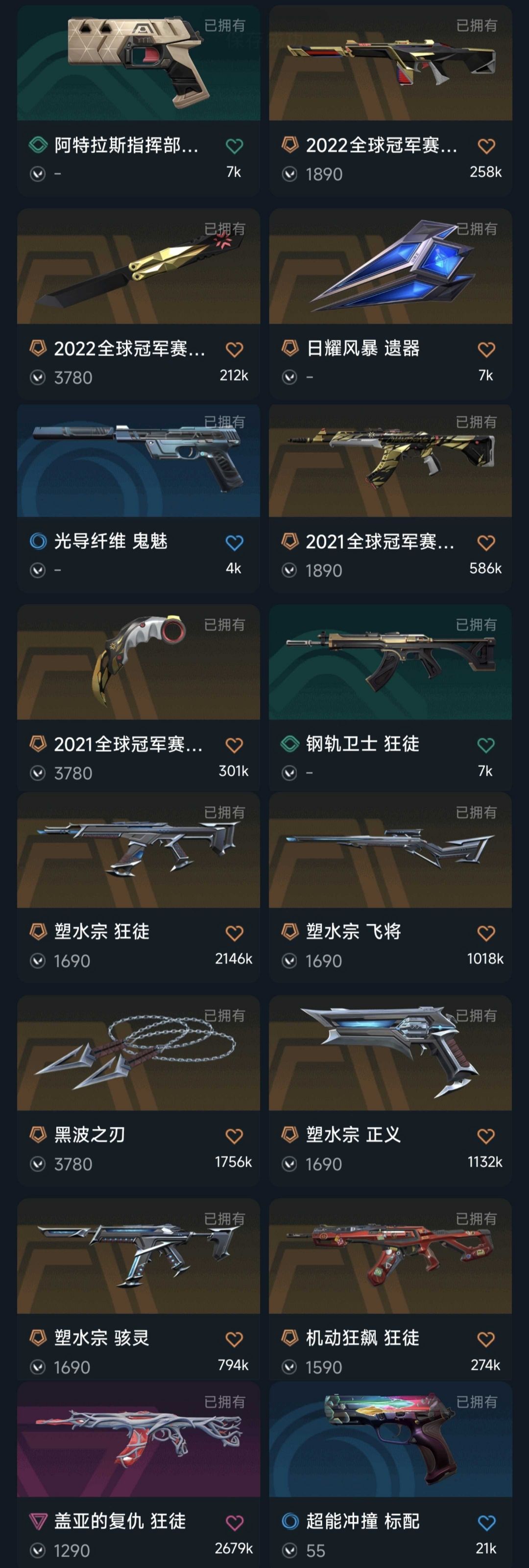 21/22冠军套8万库存♉塑水宗套装♏盖亚紫金堕天遗武狂徒♐堕天冥驹黑波之刃奇点正义剥皮小刀