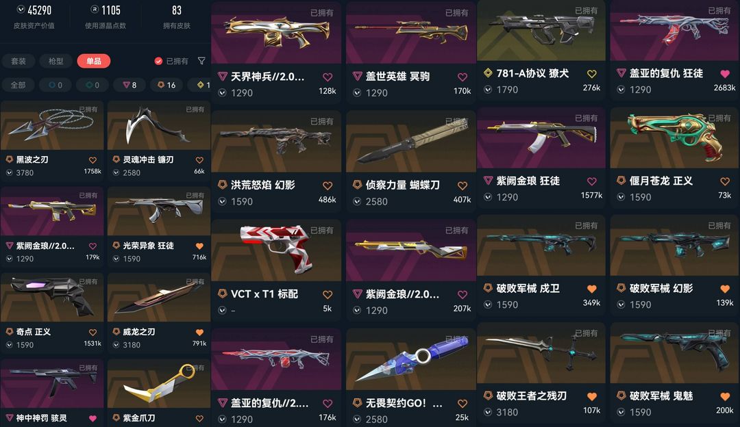 可排✅光荣异象⭐紫金爪威龙之刃黑波之刃⭐盖亚紫金流脓紫金破败幻影⭐奇点苍龙正义⭐破败鬼魅⭐VCT标配