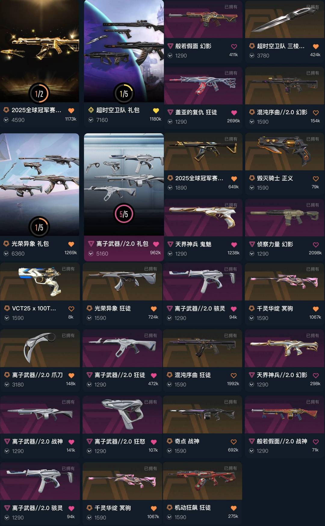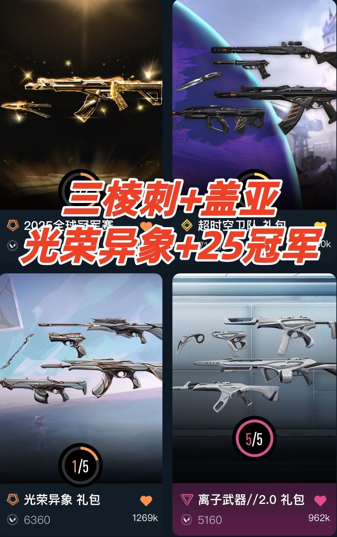 可排✅精品库存⭐三棱刺盖亚25冠军光荣异象离子2混沌摩托⭐离子爪⭐侦察力量般若天界⭐奇点天界vct