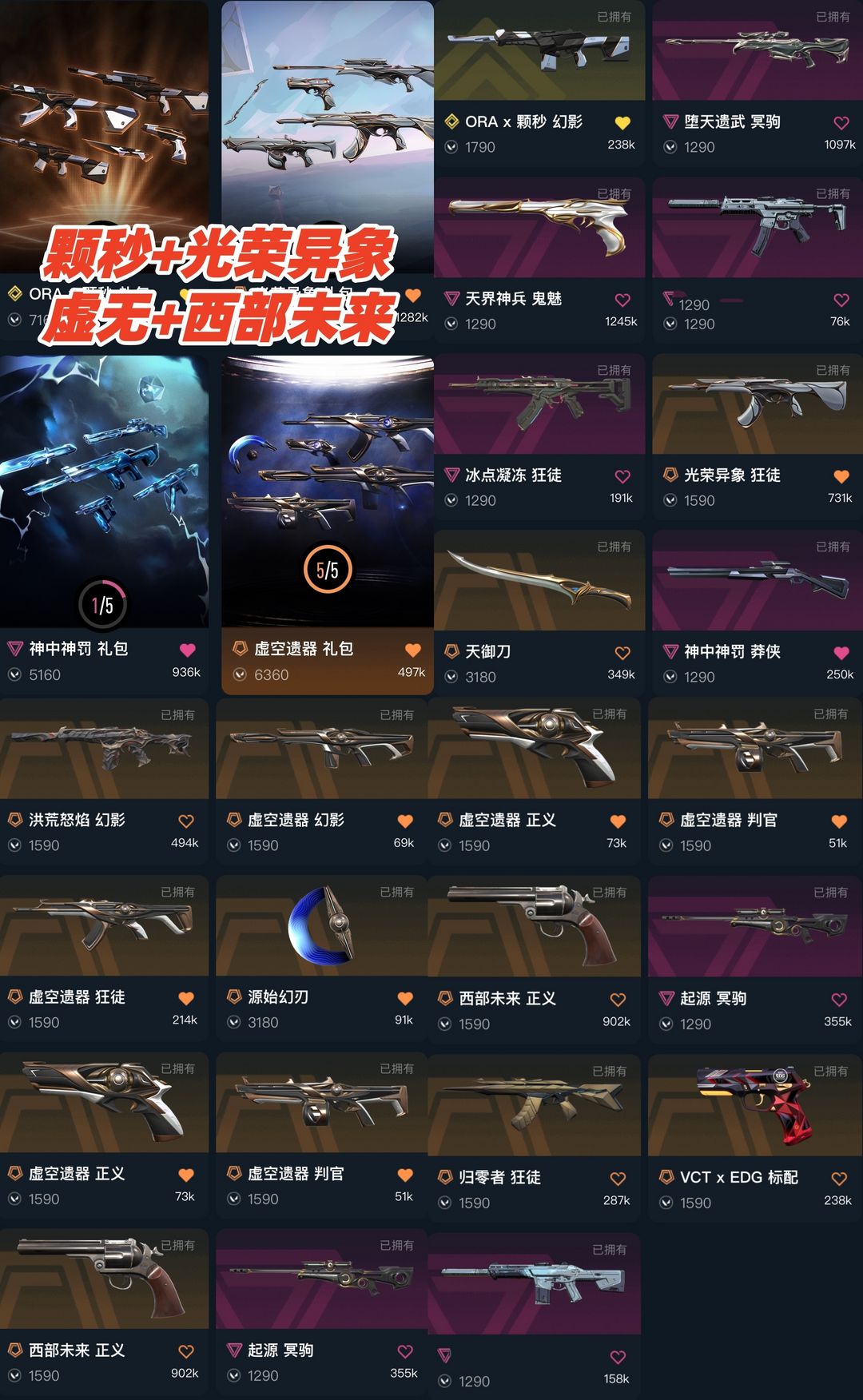 可排✅精品库存⭐颗秒冰点光荣异象虚无归零者⭐天御刀幻刃⭐洪荒怒焰⭐天界鬼魅⭐西部未来⭐vct神中神罚