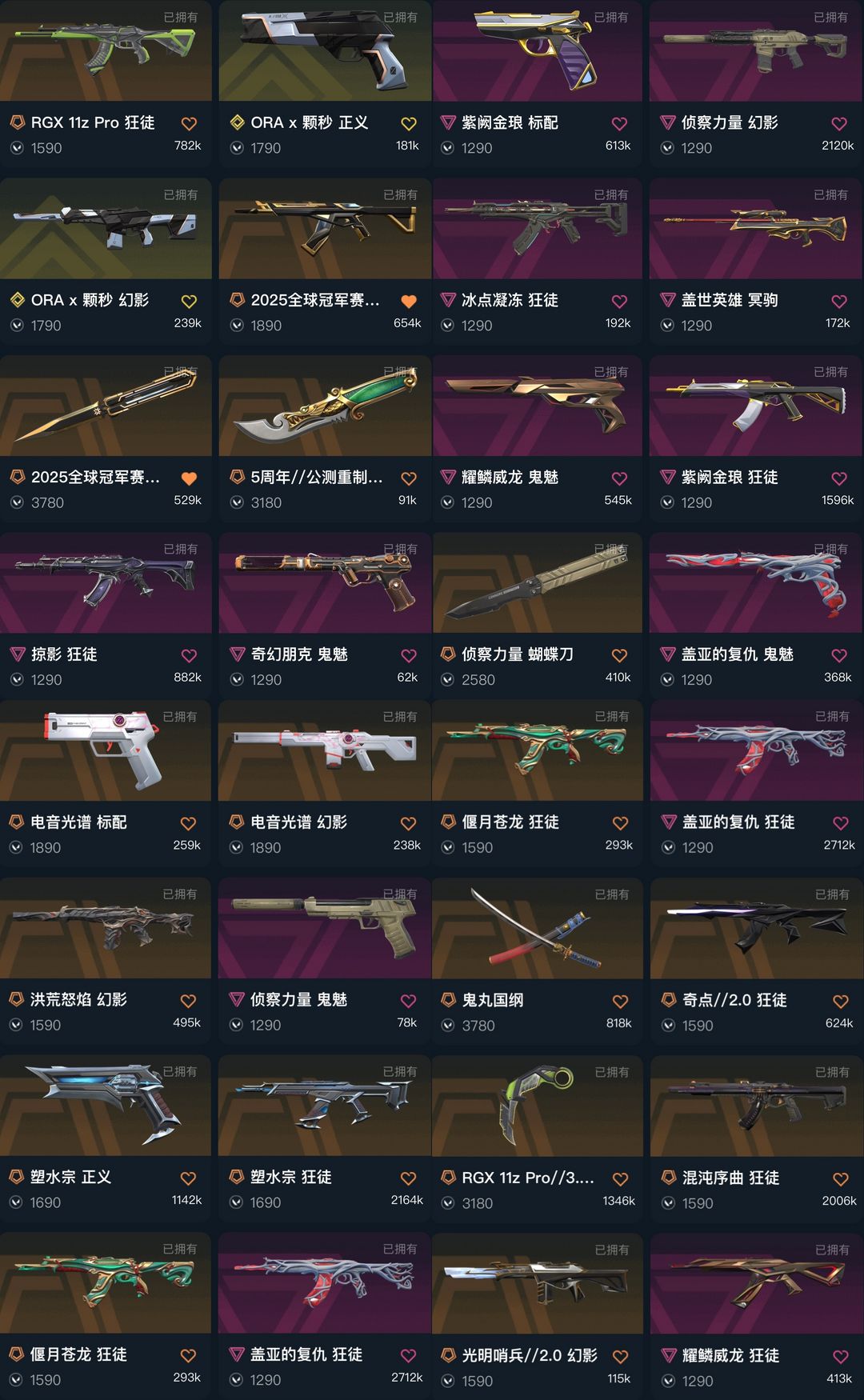 可排✅5.5万⭐显卡25冠军套掠夺冰点紫金塑水宗盖亚混沌威龙⭐显卡爪太刀蝴蝶刀苍龙之刃⭐光谱侦察紫金