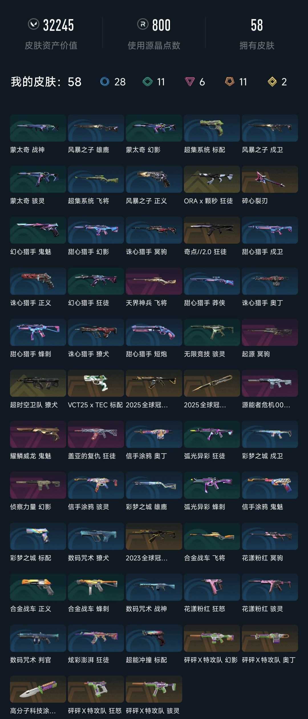 武器皮肤数量:58
