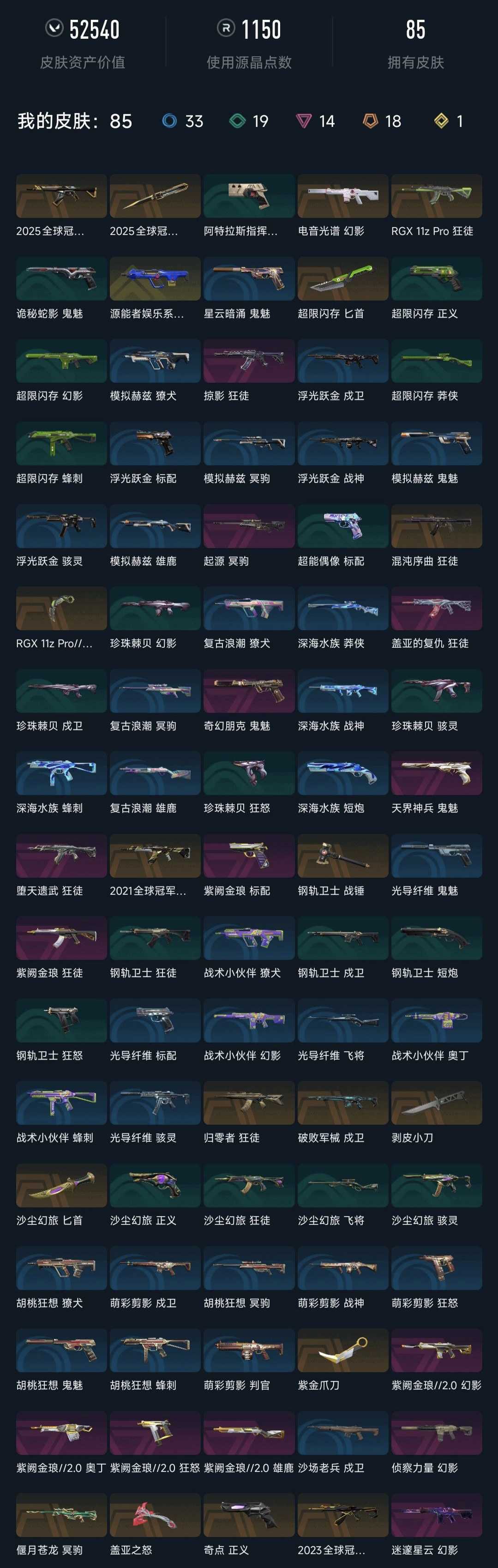 武器皮肤数量:85