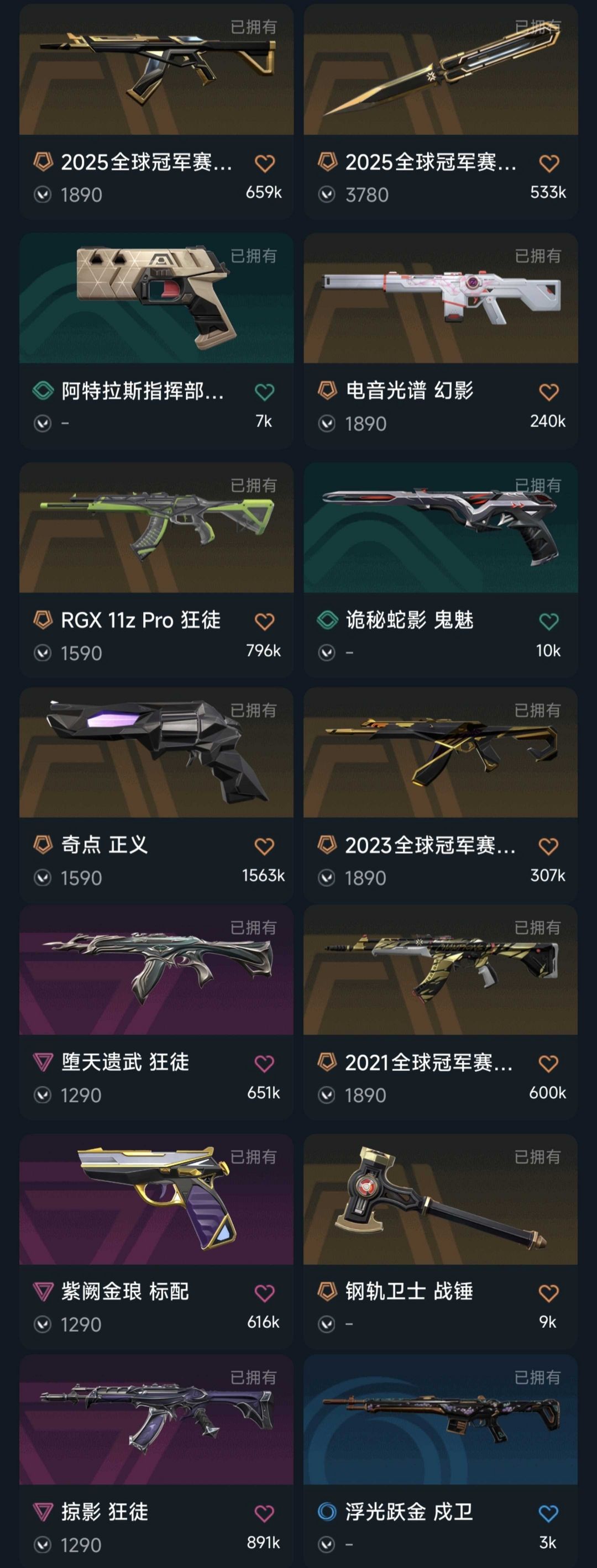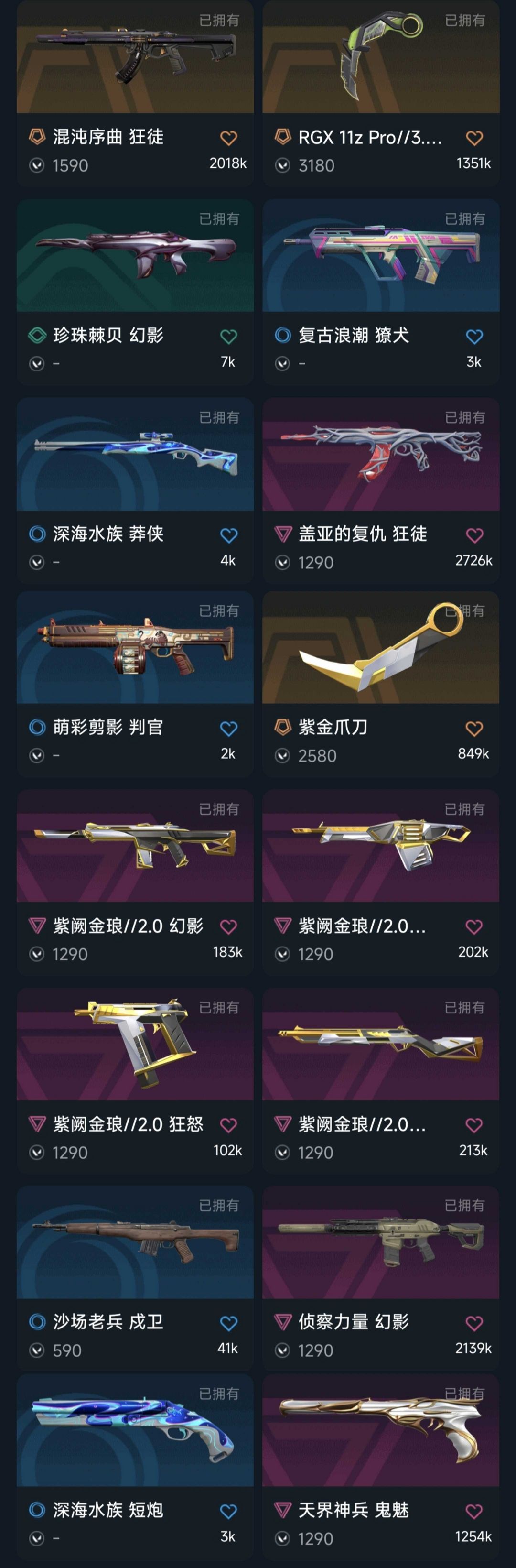 21/23/25冠军套♉10万库存紫金套装♏盖亚混沌掠影侦查力量♐RGX爪刀金刀奇点正义天界鬼魅