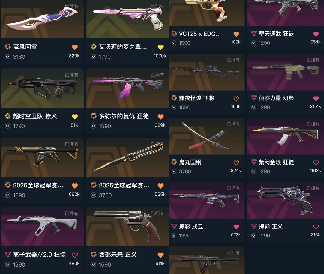 可排✅精品库存⭐多弥尔25冠军套离子2弃王紫金混沌⭐流风回雪太刀蝴蝶刀⭐侦察力量⭐西部未来掠影vc
