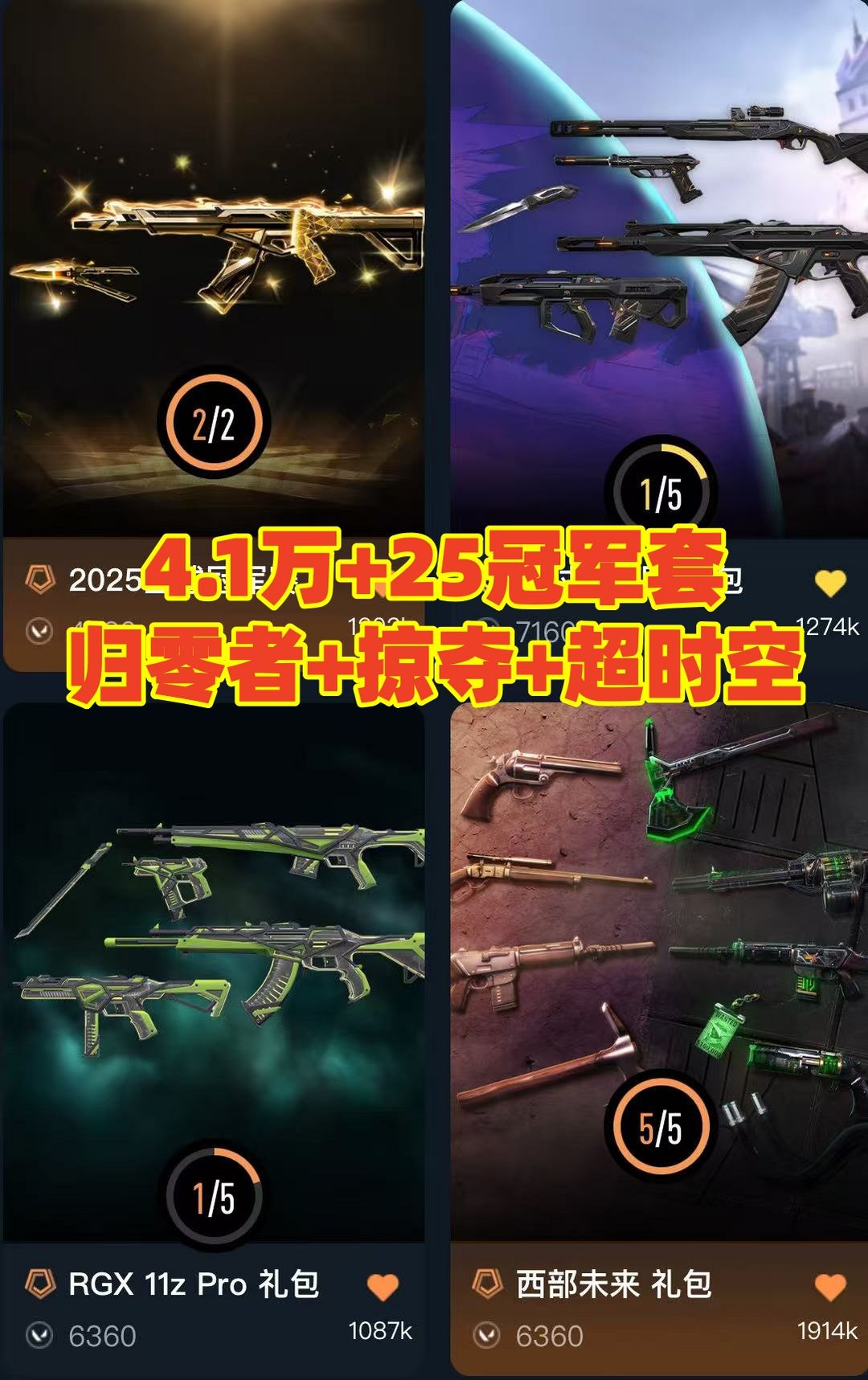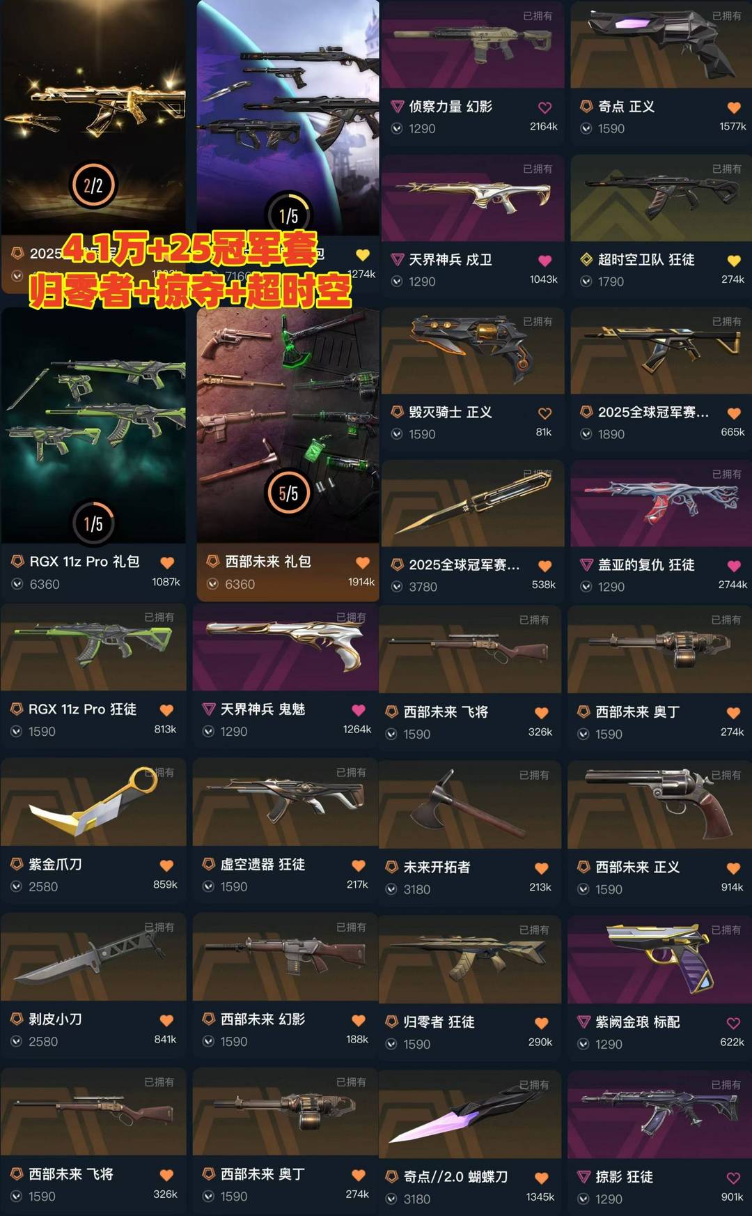 可排✅4.1万⭐超时空卫队25冠军套盖亚显卡虚无归零者掠夺⭐蝴蝶刀剥皮小刀紫金爪刀⭐侦察力量西部未来
