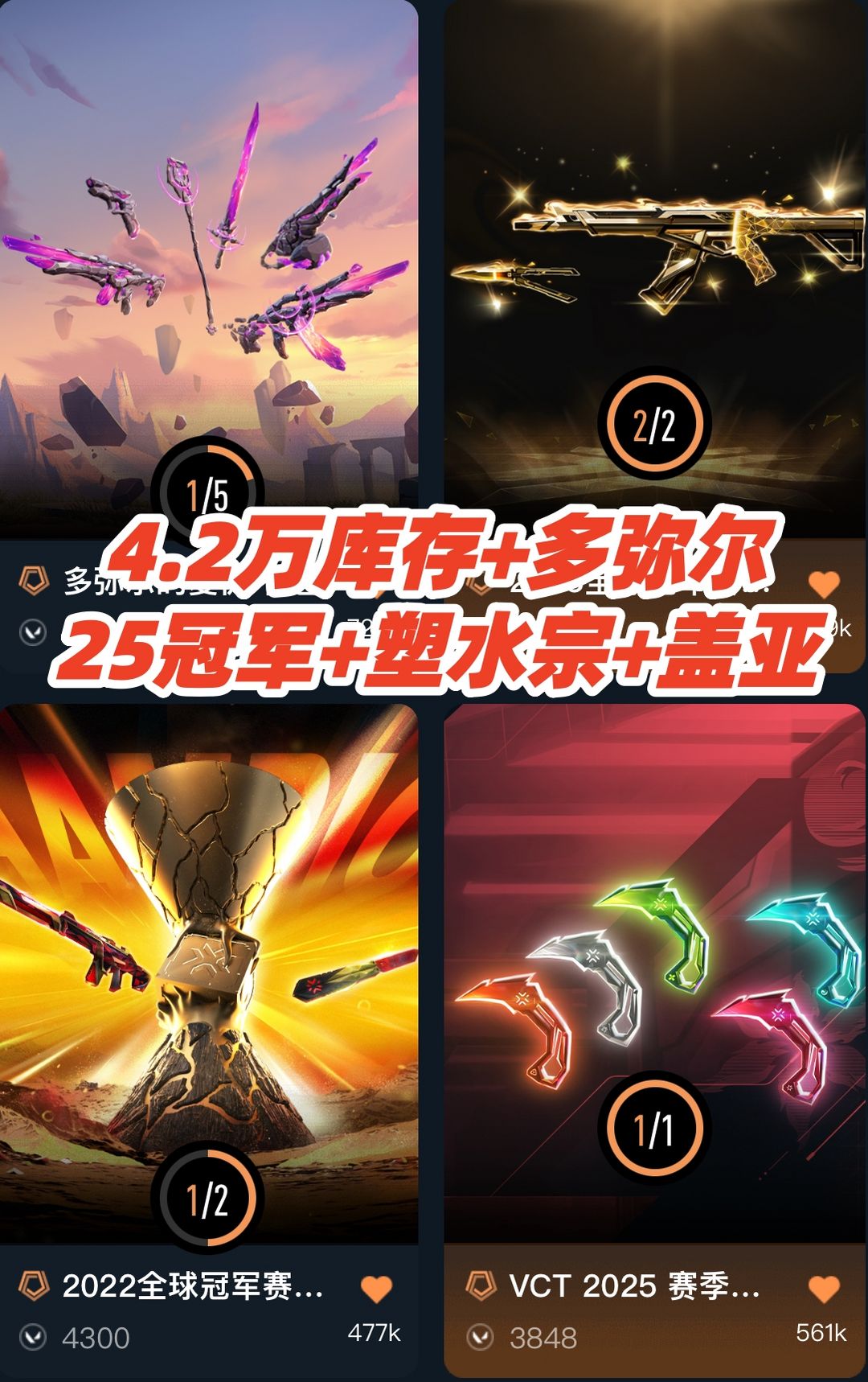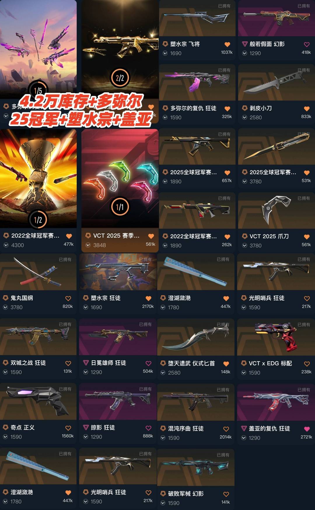 可排✅4.2万⭐多弥尔25冠军套塑水宗日冕雄狮双城掠夺盖亚混沌⭐鱼扇太刀vct爪刀蝴蝶刀剥皮⭐般若