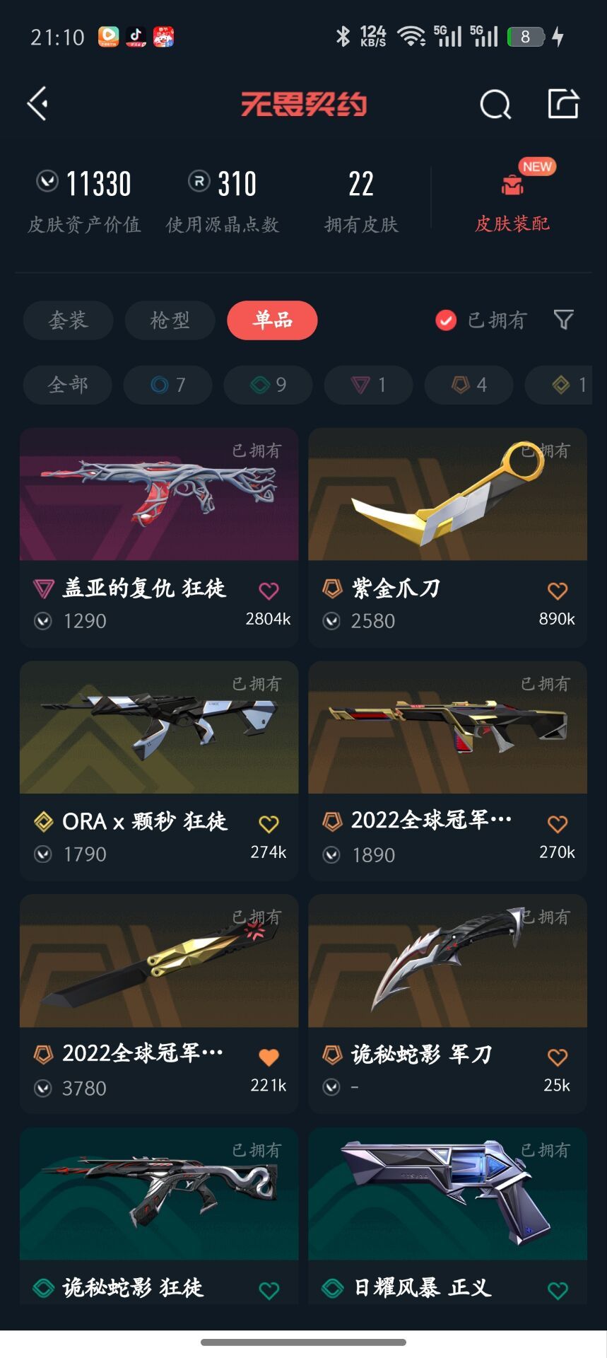 武器皮肤数量:22