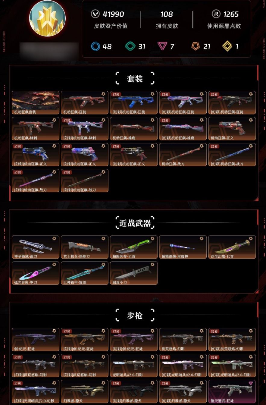 武器皮肤数量:108