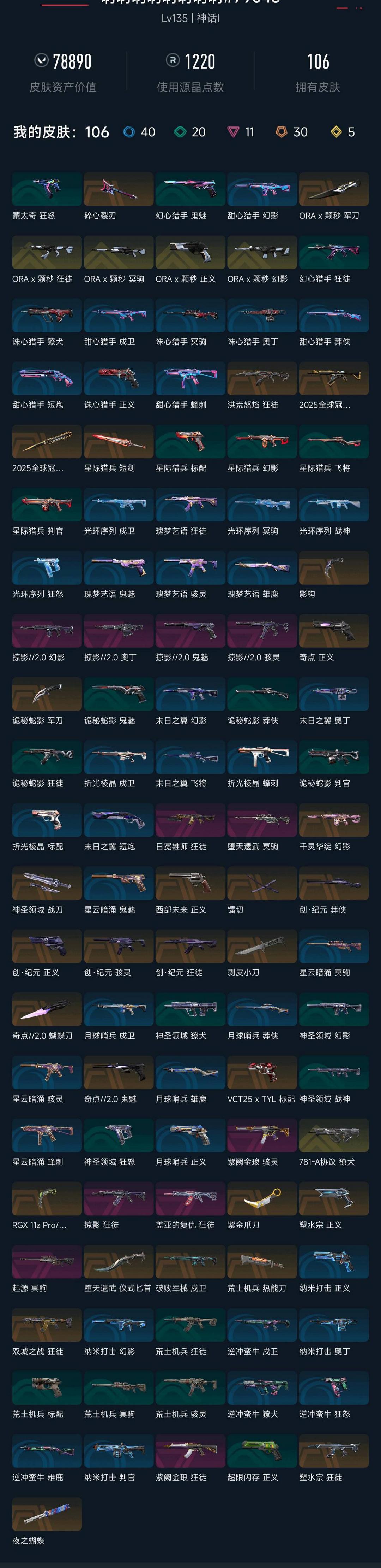 武器皮肤数量:106